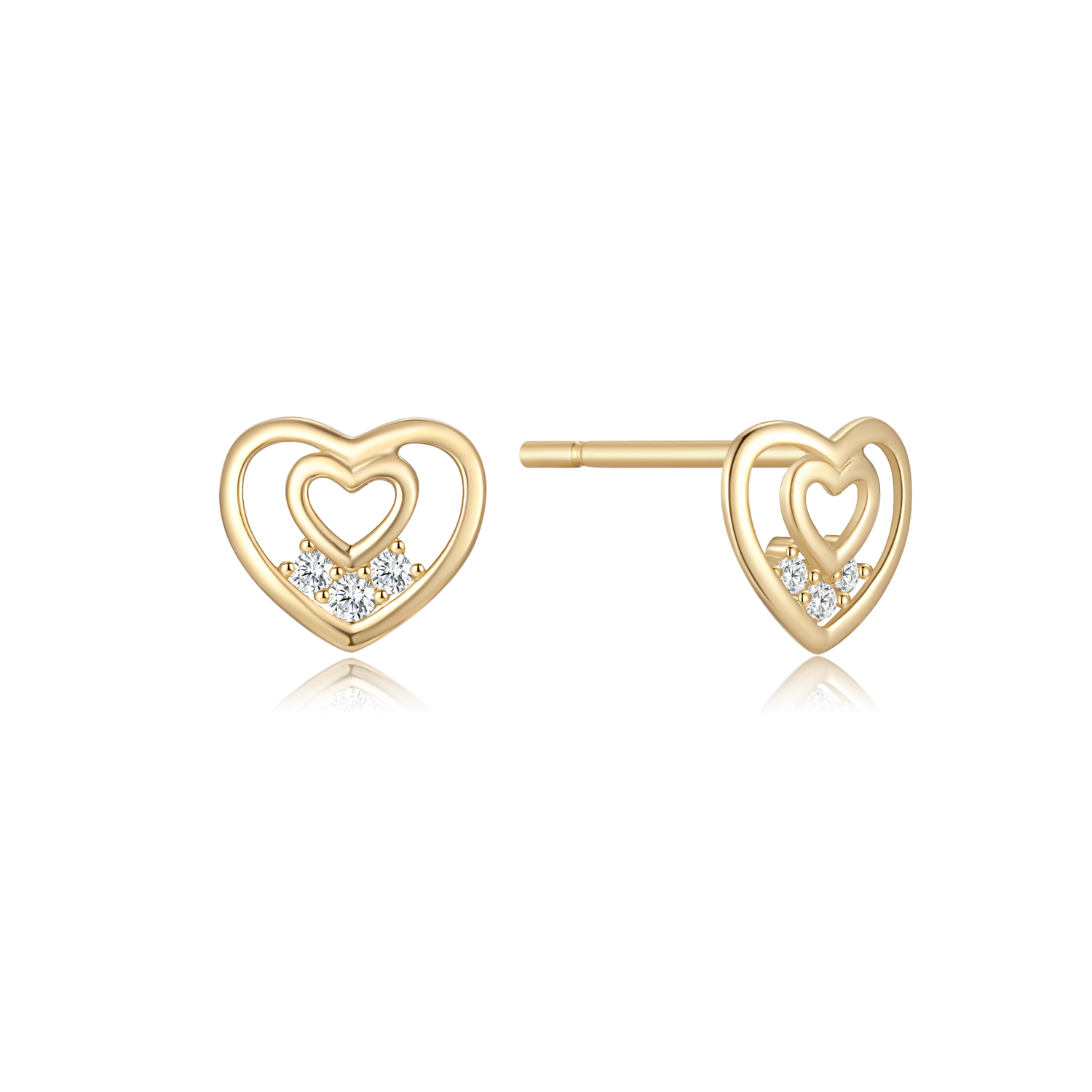 14 kt. guld ørestikker dobbelt hjerte med 3 syntetiske cubic zirconia imellem dem. "Mor og barn"