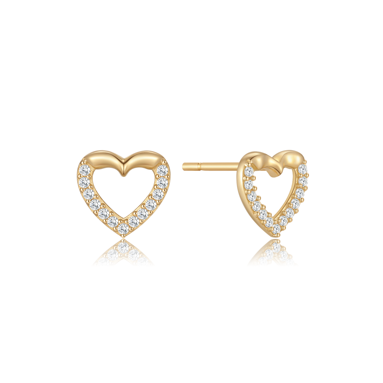 14 kt. guld ørestikker hjerte med syntetiske cubic zirconia i bunden og blank i toppen.