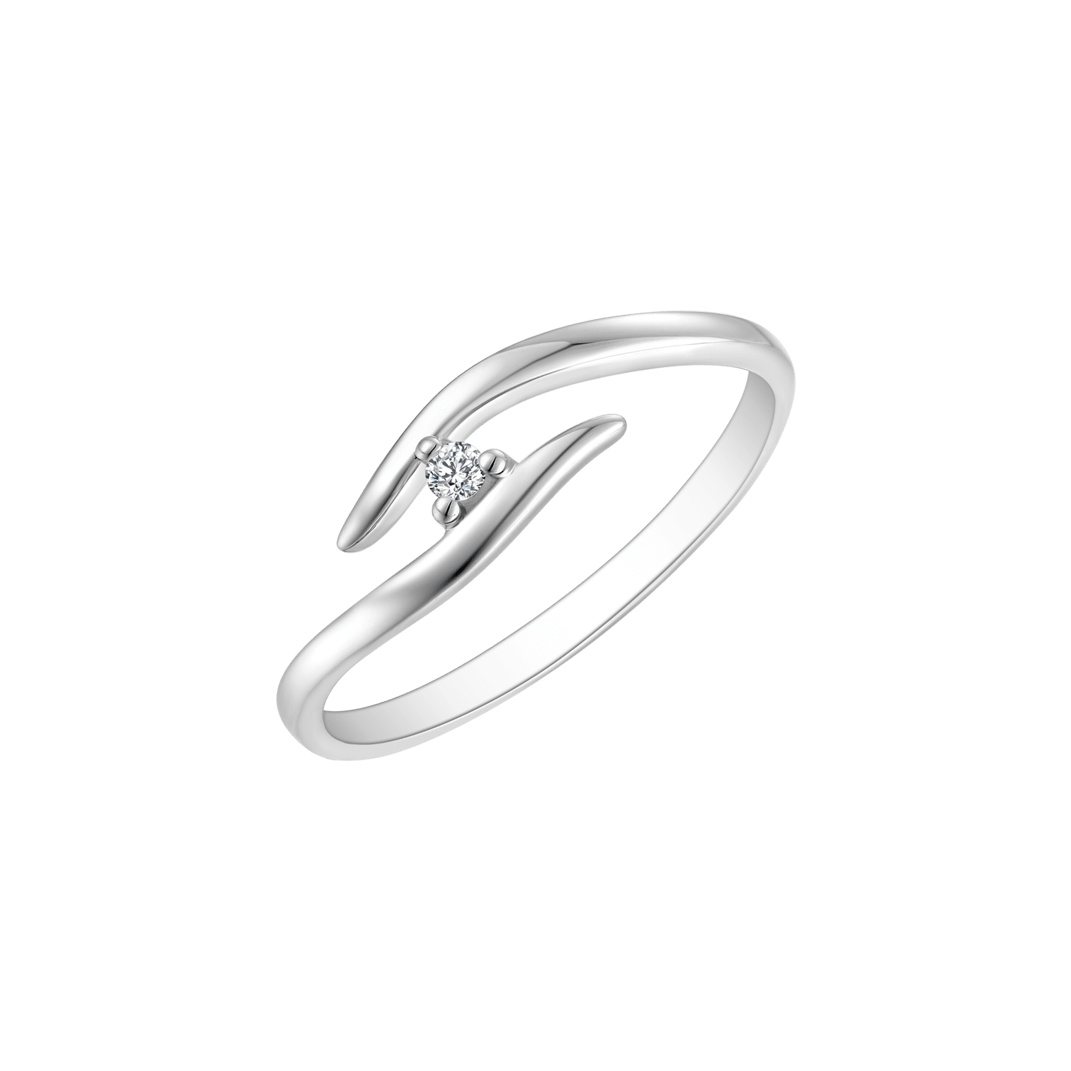 14 kt. hvidguld ring åben dråbe i siderne med brillant.