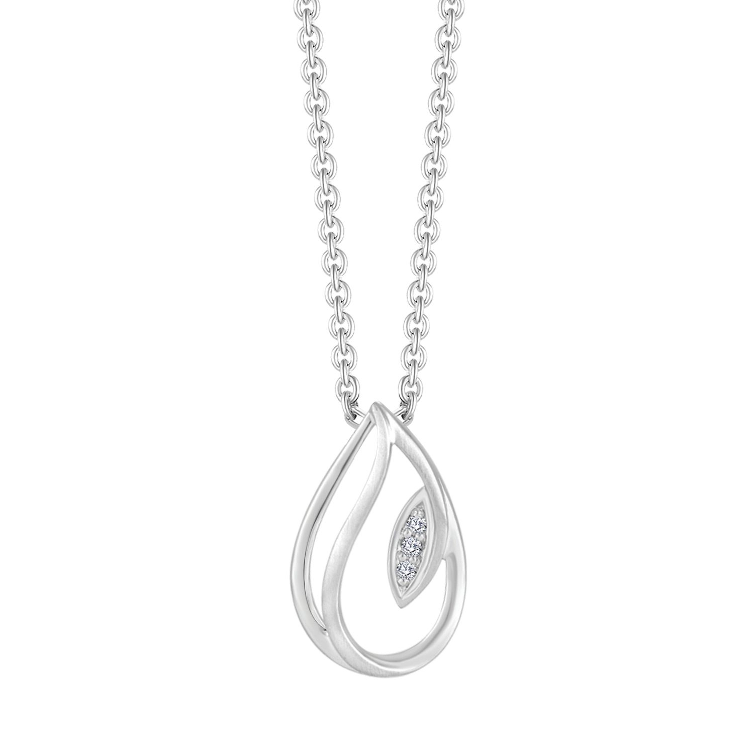 14 kt. hvidgulds vedhæng dråbe med dobbelt streger og lille oval med 7 brillanter.