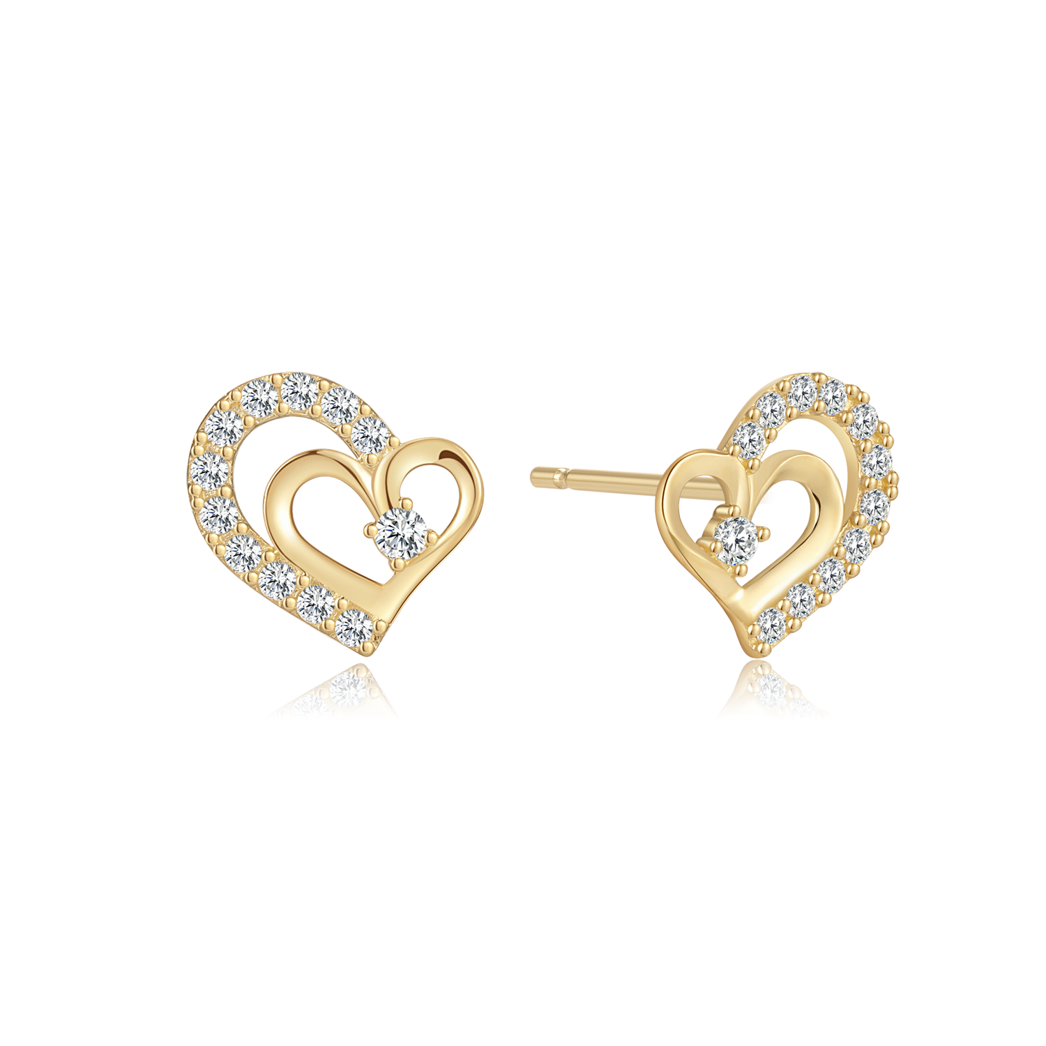 8 kt. guld ørestikker dobbelt hjerte med syntetiske cubic zirconia i kanten af det store og i midten af det lill