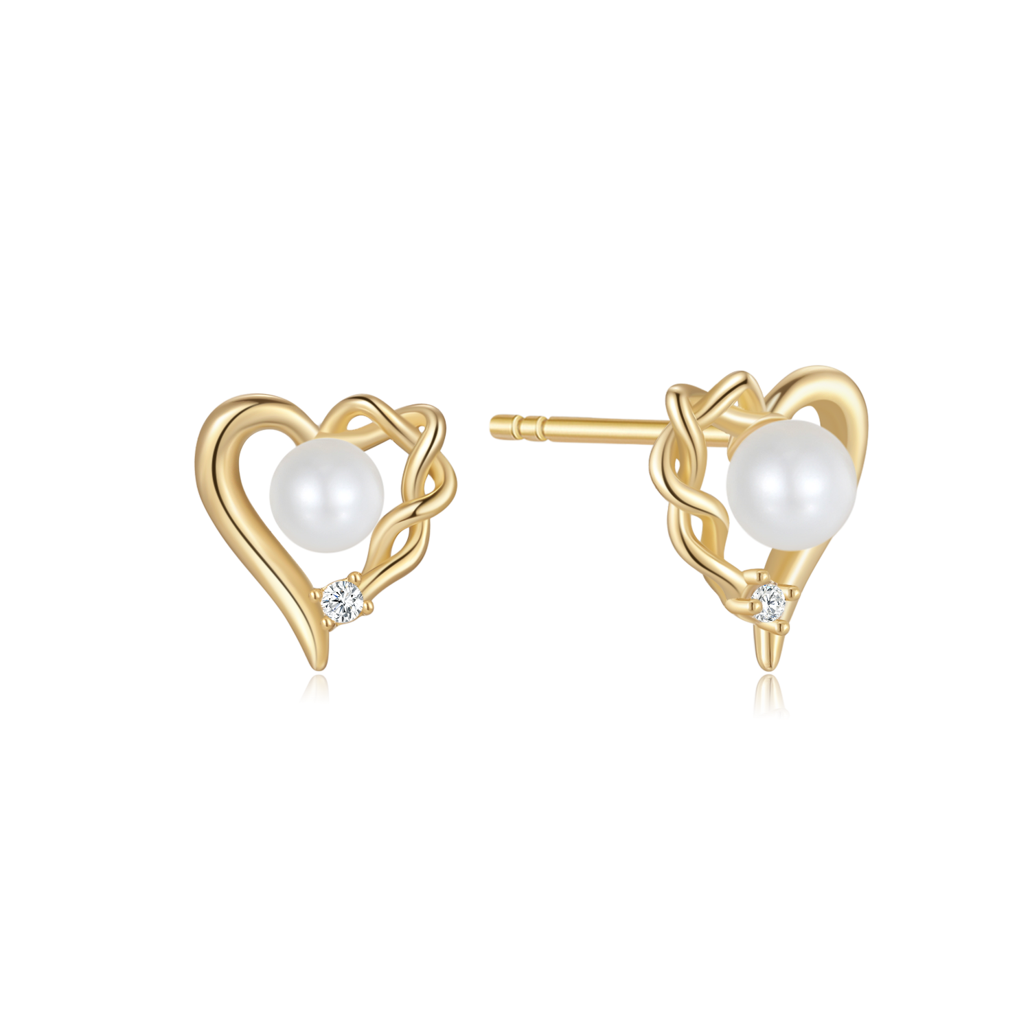 8 kt. guld ørestikker hjerte med ferskvandsperle og syntetiske cubic zirconia.