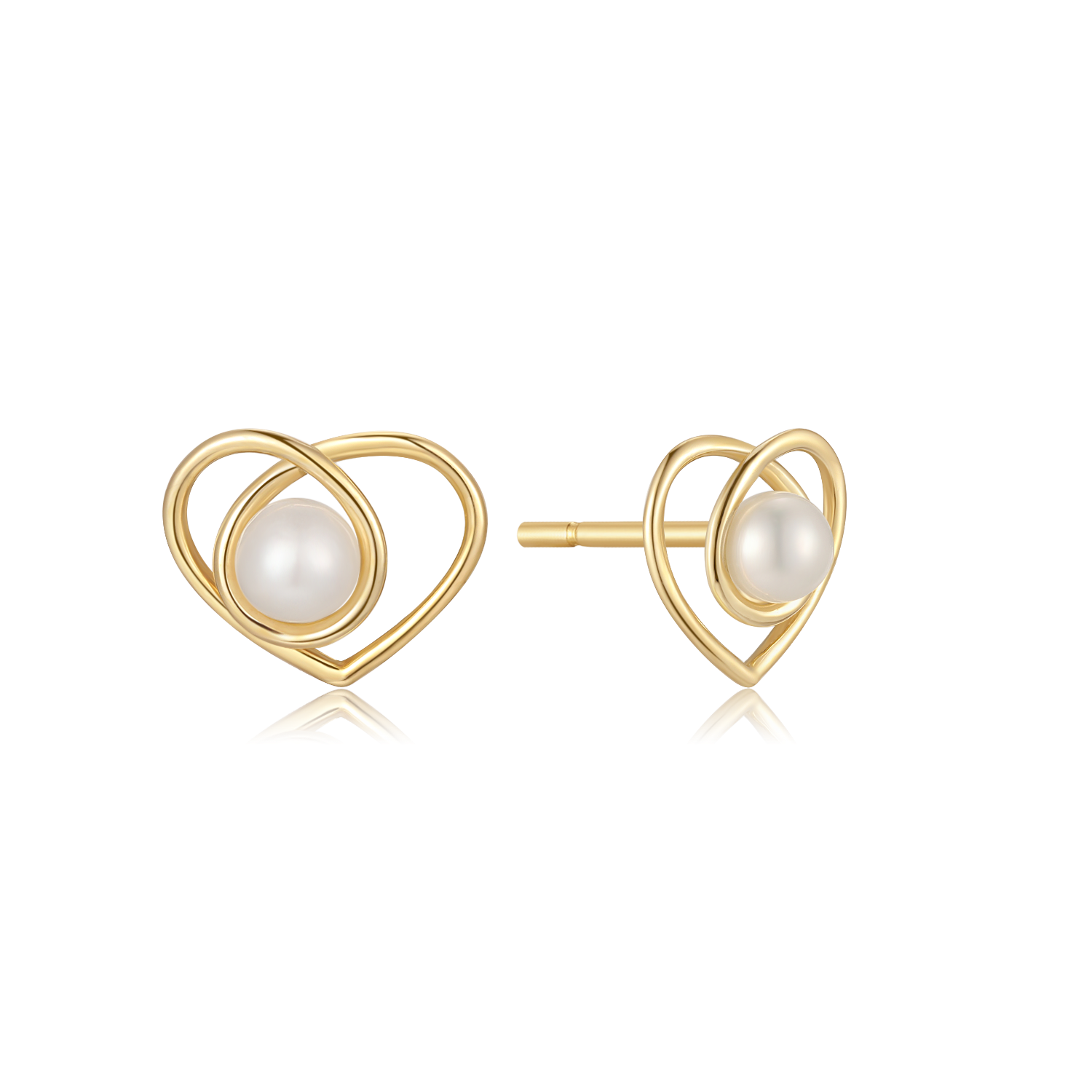 8 kt. guld ørestikker hjerte med ferskvandsperle