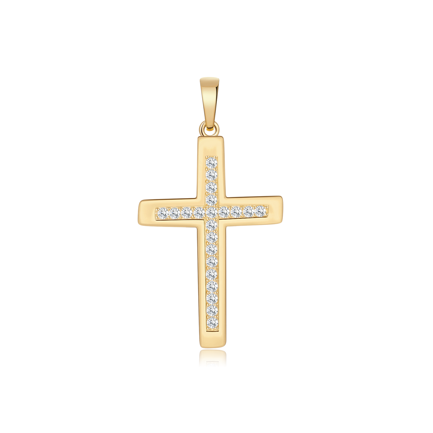 8 kt. guld vedhæng kors fyldt med syntetiske cubic zirconia i midten.