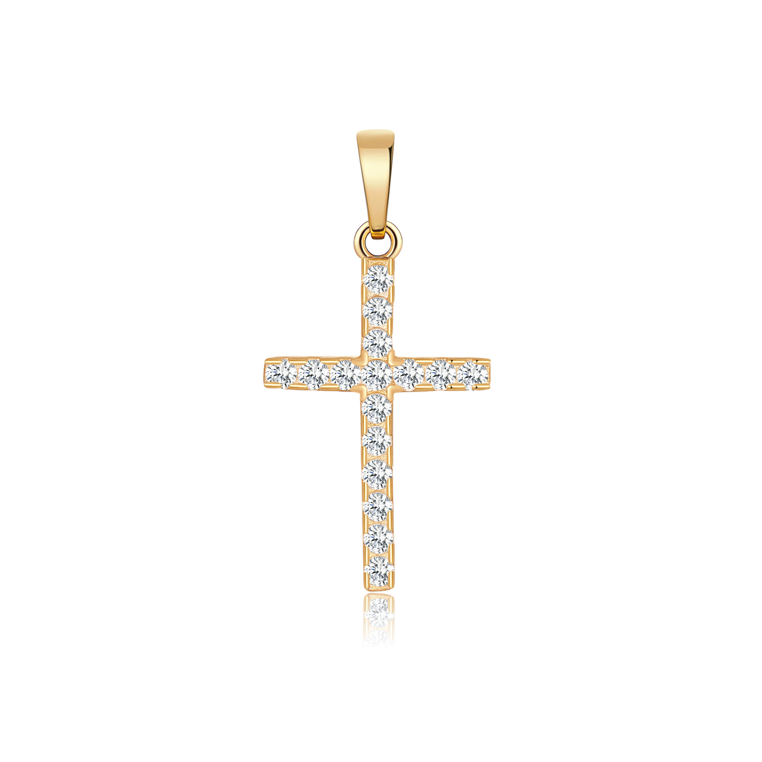 8 kt. guld vedhæng kors fyldt med syntetiske cubic zirconia og med hule om bagved.