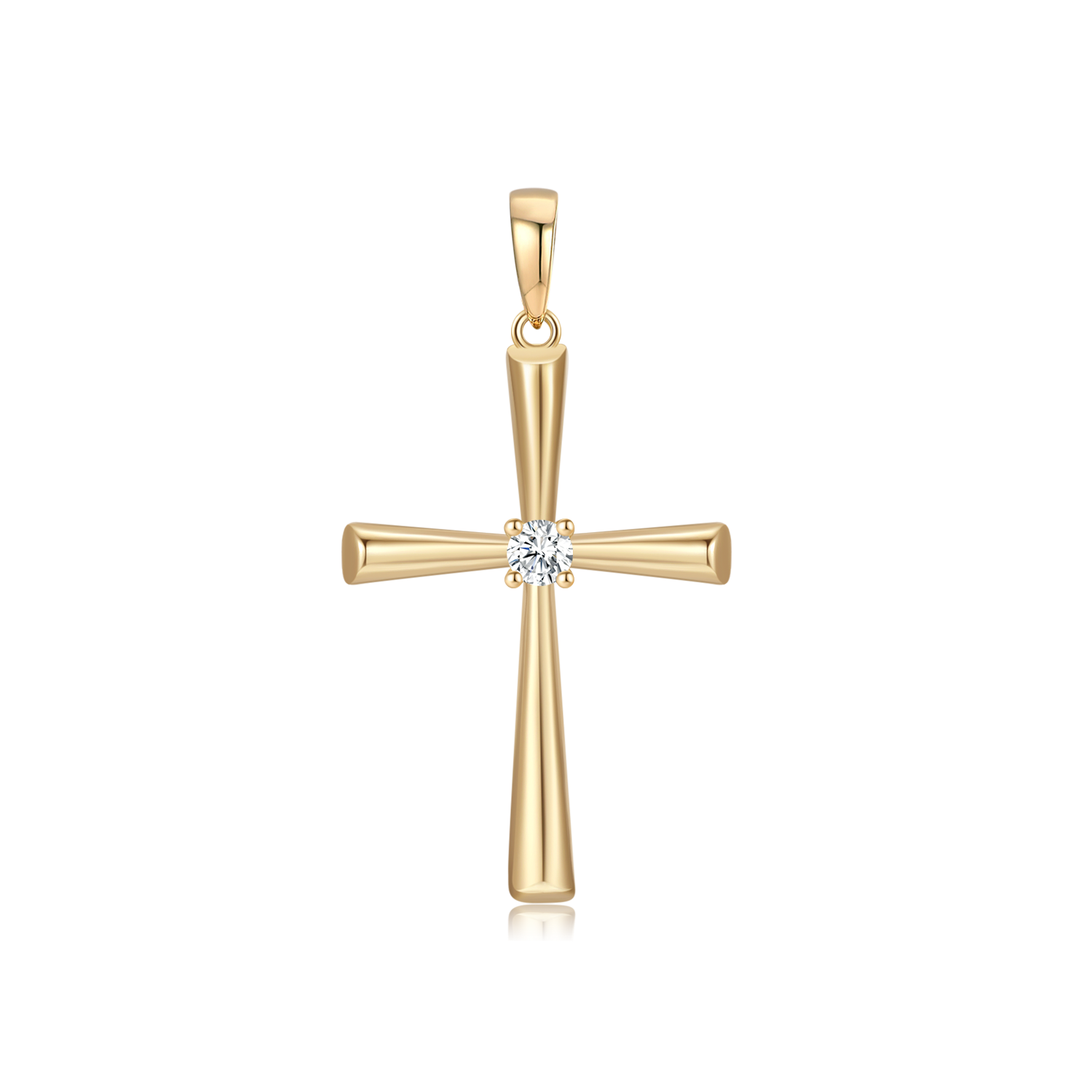 8 kt guld vedhæng kors med syntetiske cubic zirconia i midten