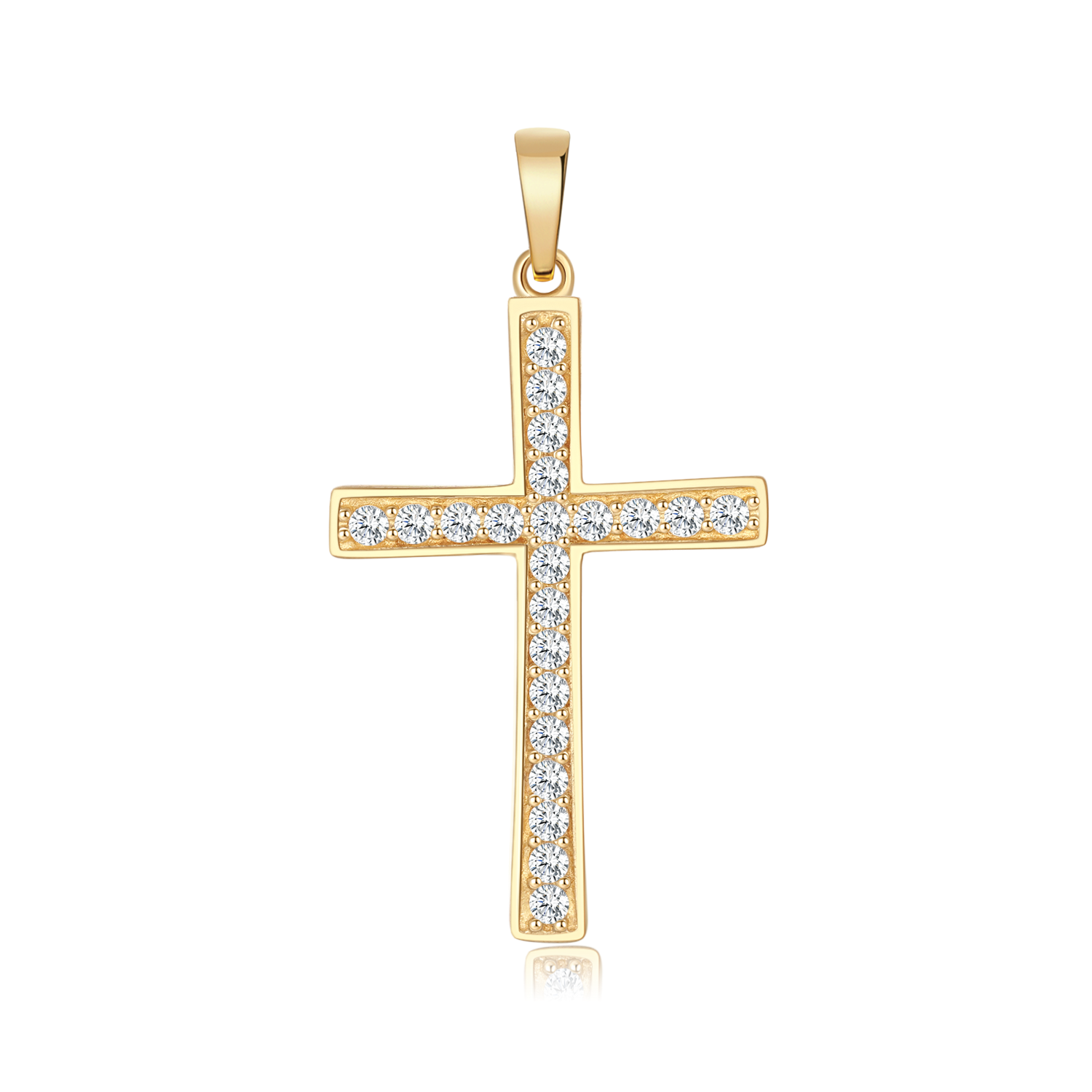 8 kt. guld vedhæng kors med syntetiske cubic zirconia ned i.
