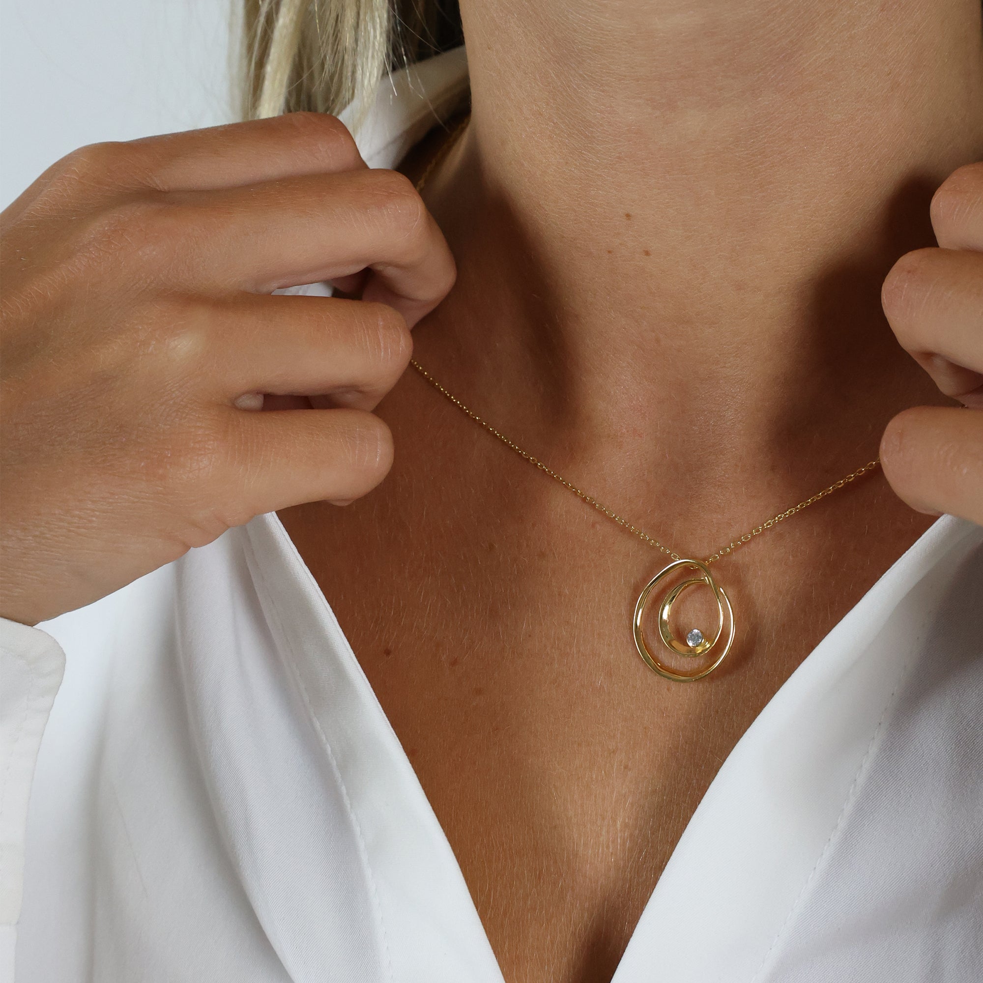 Forkæl dig selv med Aagaard's forbløffende 8 karat vedhæng, der er udført som smukke asymmetriske cirkler med en strålende Cubic Zirconia i midten. Dette unikke smykke er et perfekt blend af elegance og modernitet, der vil tilføje et sofistikeret touch til enhver stil. Håndværket er uovertruffent, hvilket sikrer enestående kvalitet og holdbarhed. Vælg dette vedhæng for at fremhæve din individualitet og tilføje en subtil glans til dine outfits. Udforsk Aagaard's eksklusive kollektion og find din personlige favorit i dag. Med forgyldt kæde 45 cm.