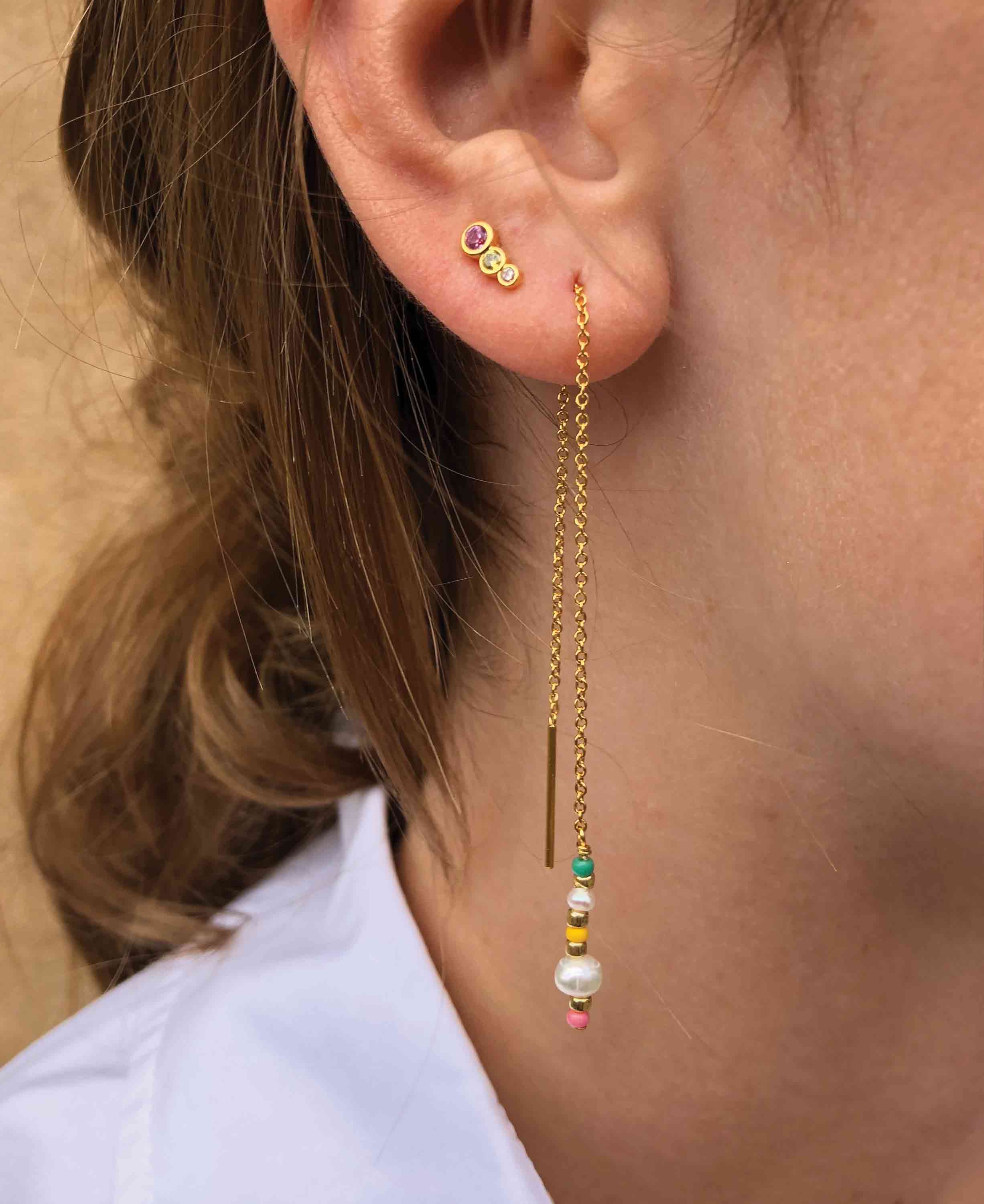 Sterling sølv forgyldt med 18 karat guld, ferskvandsperler og miyuki perler. Længde: 10 cm.