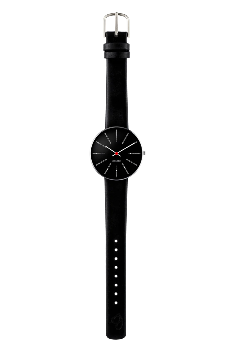 Bankers sort 34 mm med læderrem