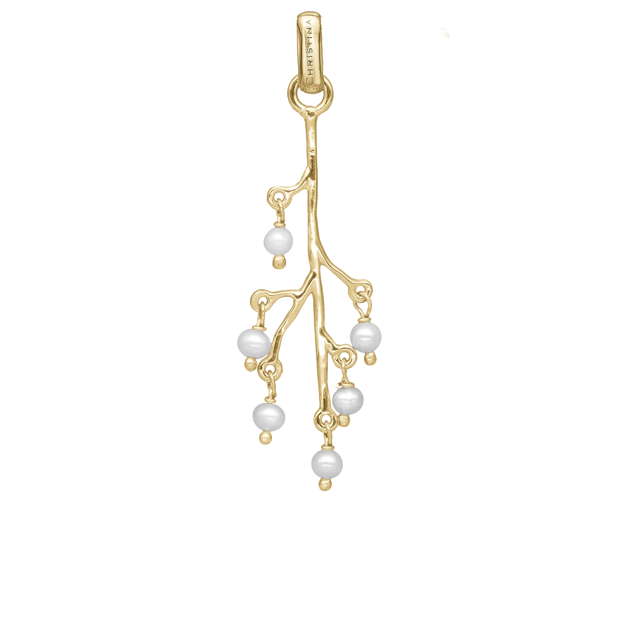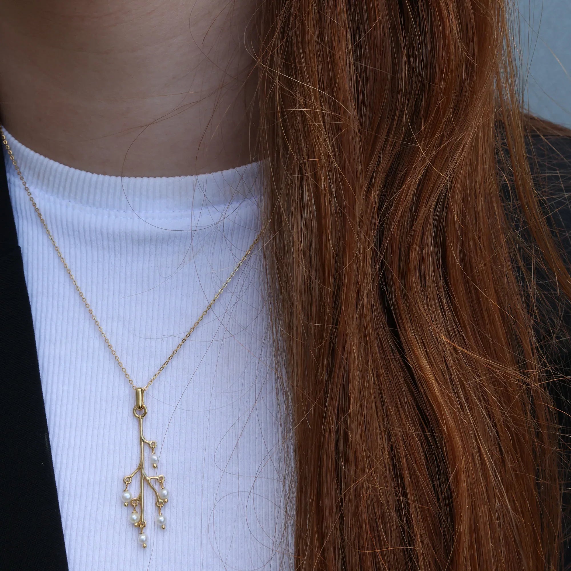 Cherry Tree Vedhæng - Blankpoleret Forgyldt Sterling Sølv m. 6 Ferskvandsperler