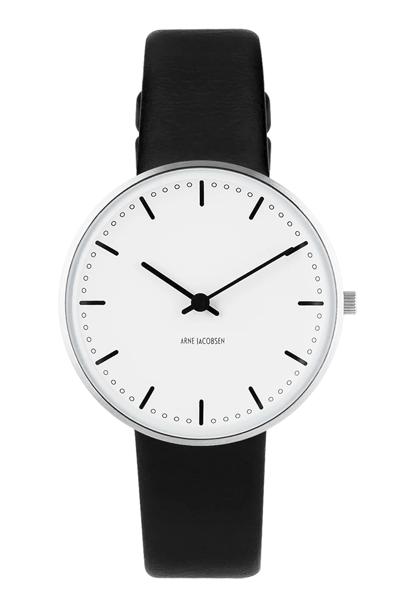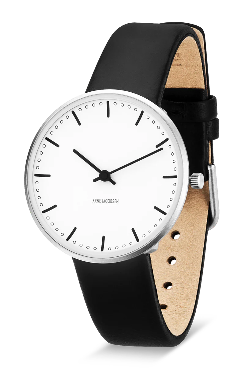 City Hall hvid 34 mm med læderrem - 53201-1601