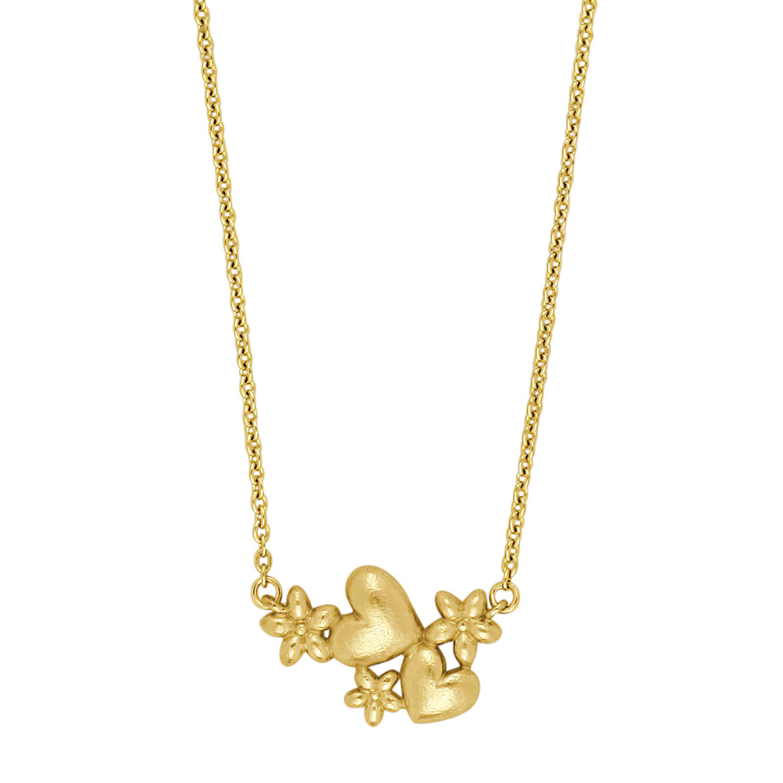 Forg. sølvvedhæng hjerter/blomster m. kæde