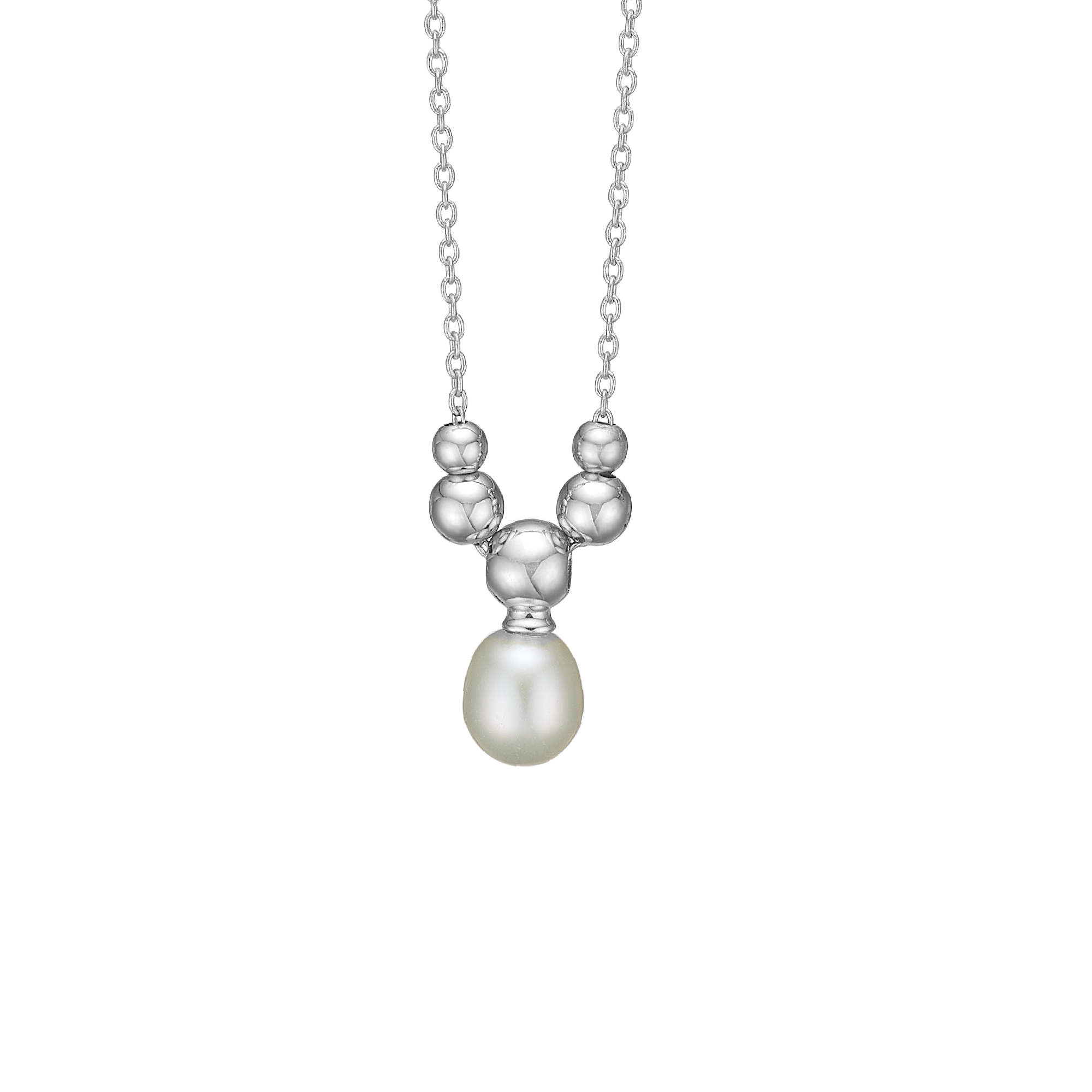 Halskæde Ferskvandsperle, 45Cm, Sølv