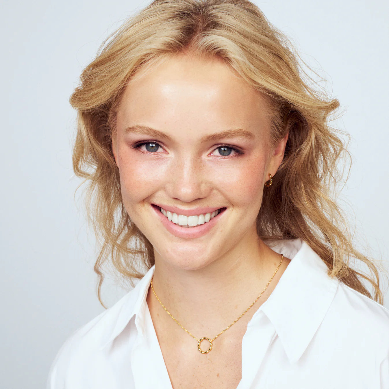 Halskæde af 18 karat forgyldt 925 sterlingsølv med en poleret overflade. Halskæde mål: Diameter 16 mm, kædelængde op til 45 cm – justerbar