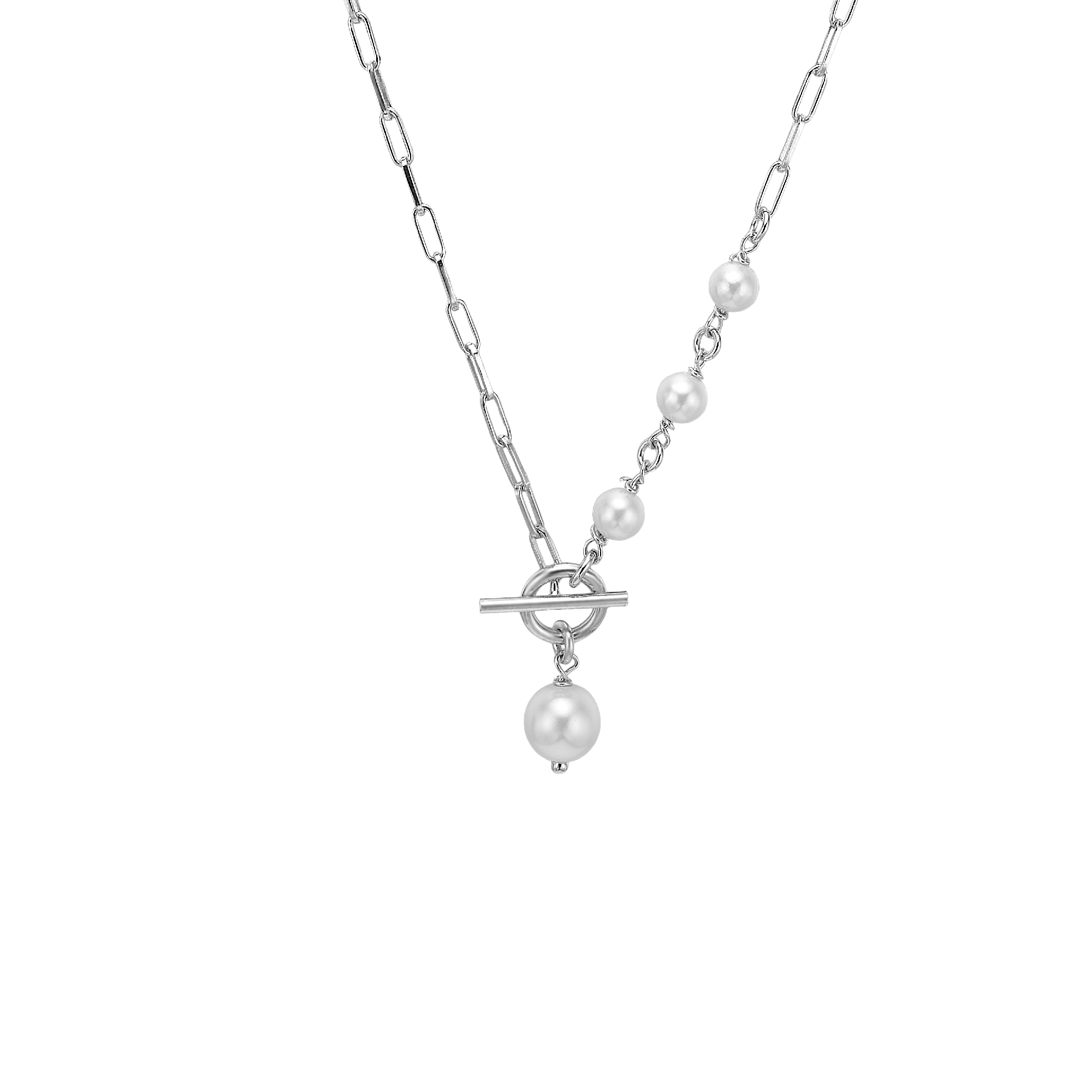 Halskæde Led M/Perler, 45 Cm, Sølv
