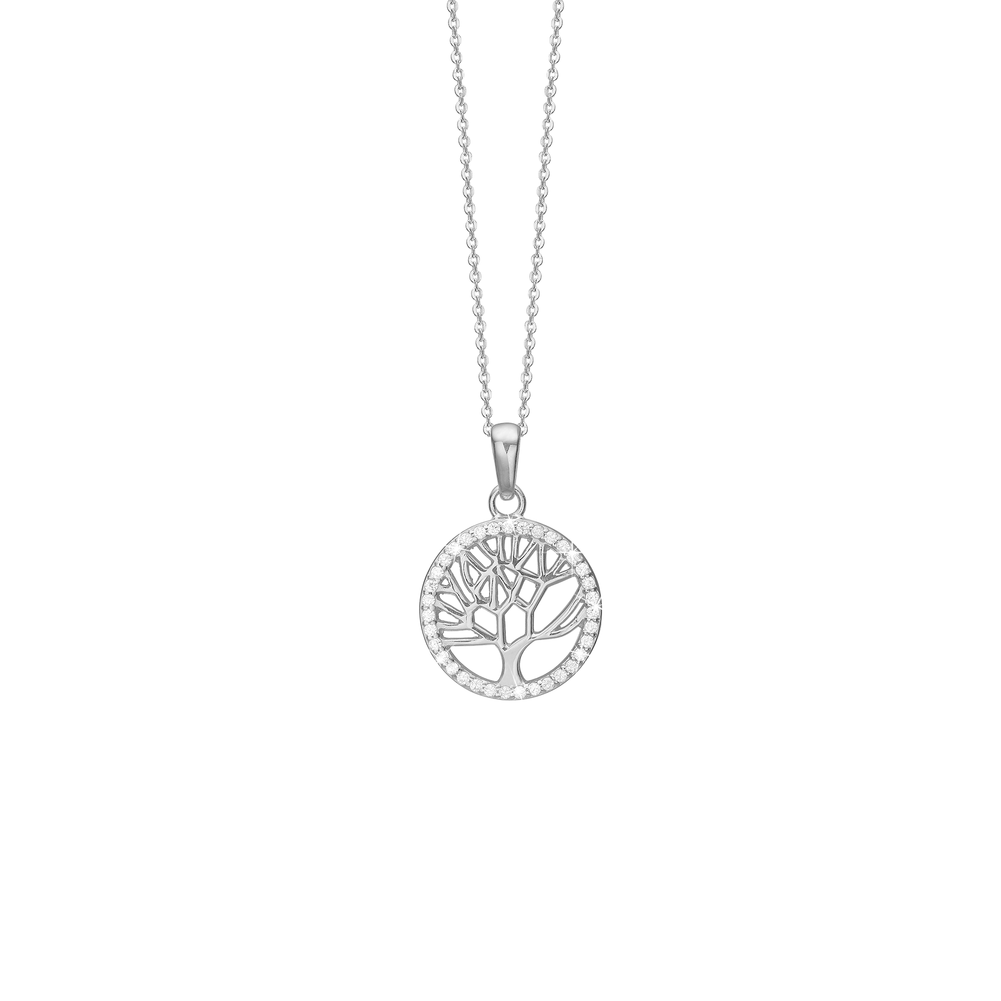 Halskæde Livets Træ, Rundt M/Cz, Sølv