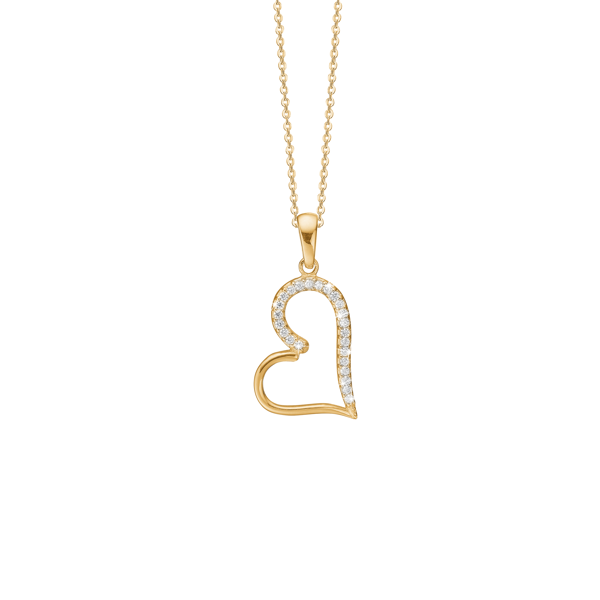 Halskæde Med Hjerte M/Cz, Forg Sølv