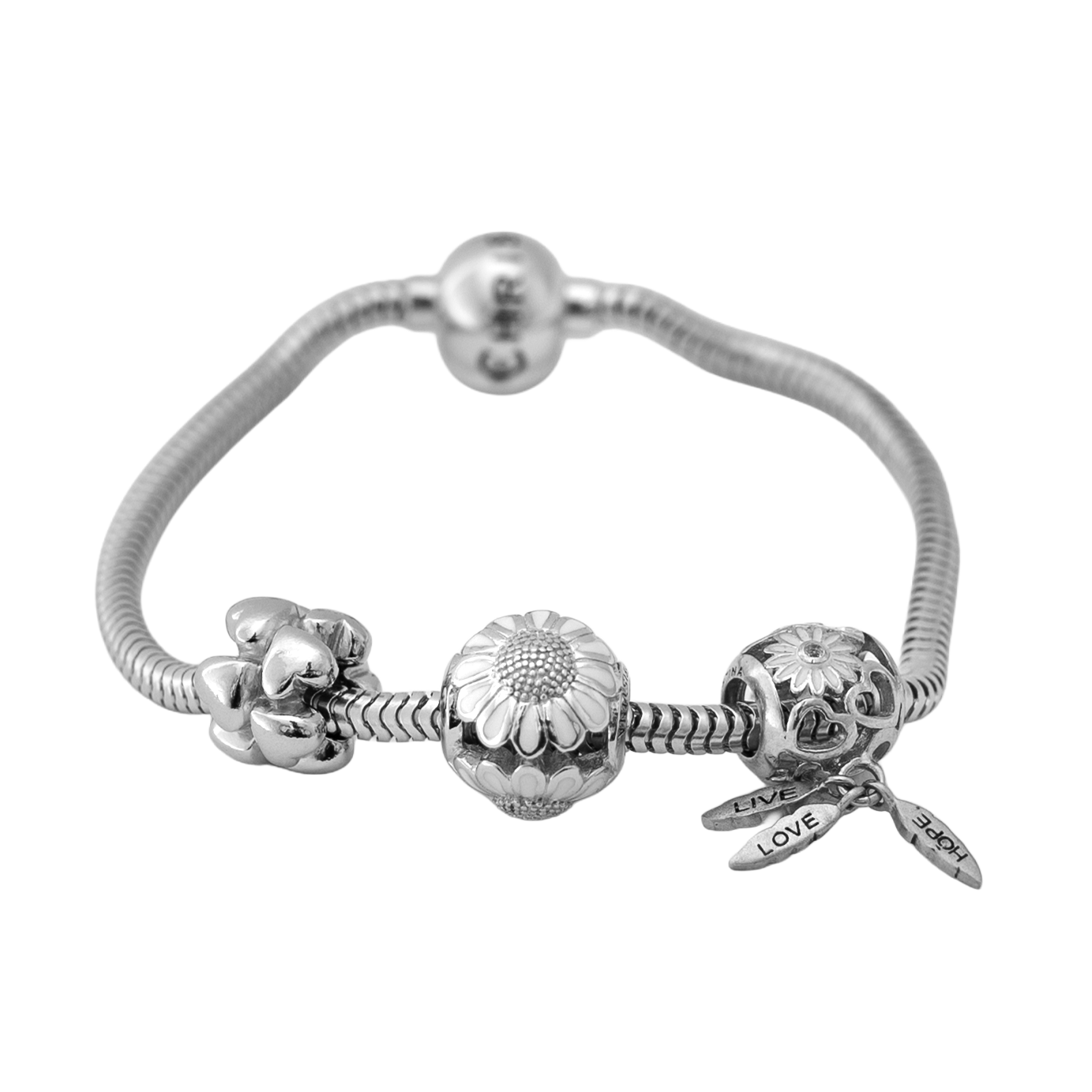 Hearts & Love Charms Armbånd Sæt i Sterling Sølv Med 3 Charms