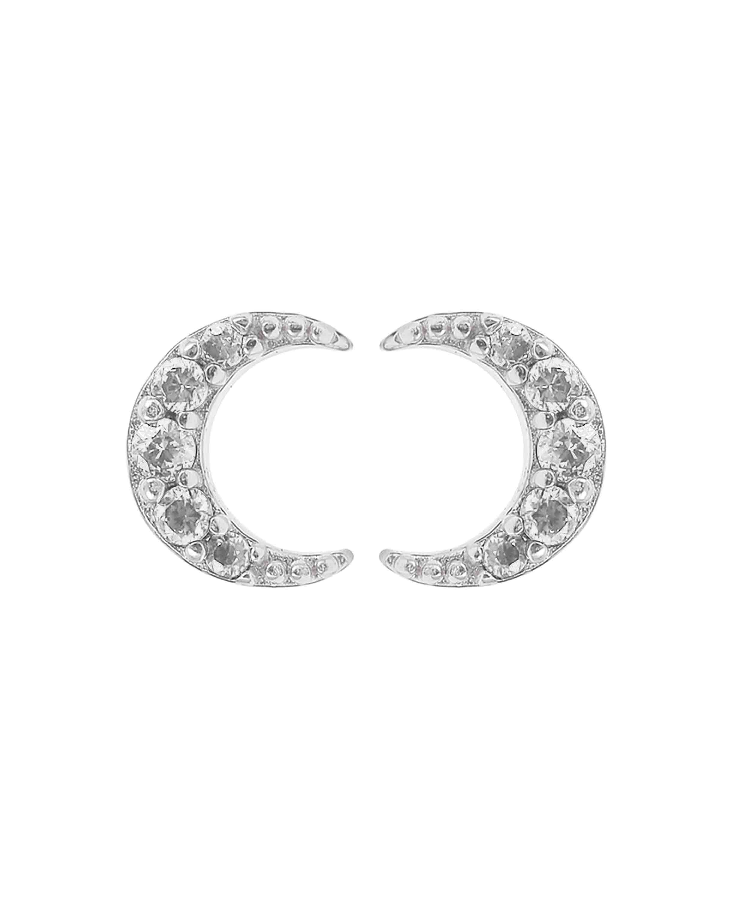 Hvide måne ørestikkerne har 5 hvide cubic zirconia. Perfekte til at kombinere med andre små ørestikker, som for eksempel Ruby stjerne øreringene.