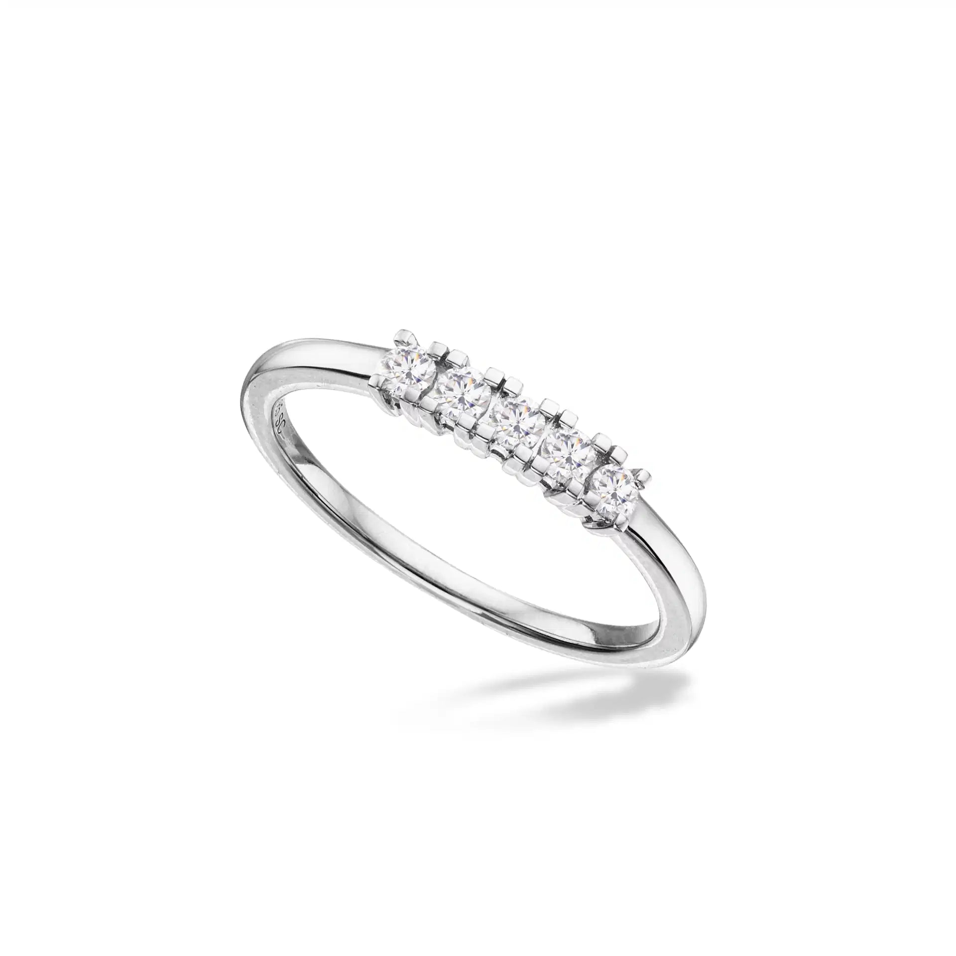 Opdag den udsøgte Kleopatra alliancering fra Scrouples, smukt udført i 14 kt. hvidguld og prydet med fem funklende 0,04 ct. HW/SI diamanter. Denne ring er skabt til at fejre kærlighedens mest betydningsfulde øjeblikke og er den perfekte gave til den særlige kvinde i dit liv. Uanset om det er til bryllup, Valentinsdag eller som en morgengave, vil denne ring være et evigt minde om din hengivenhed.
