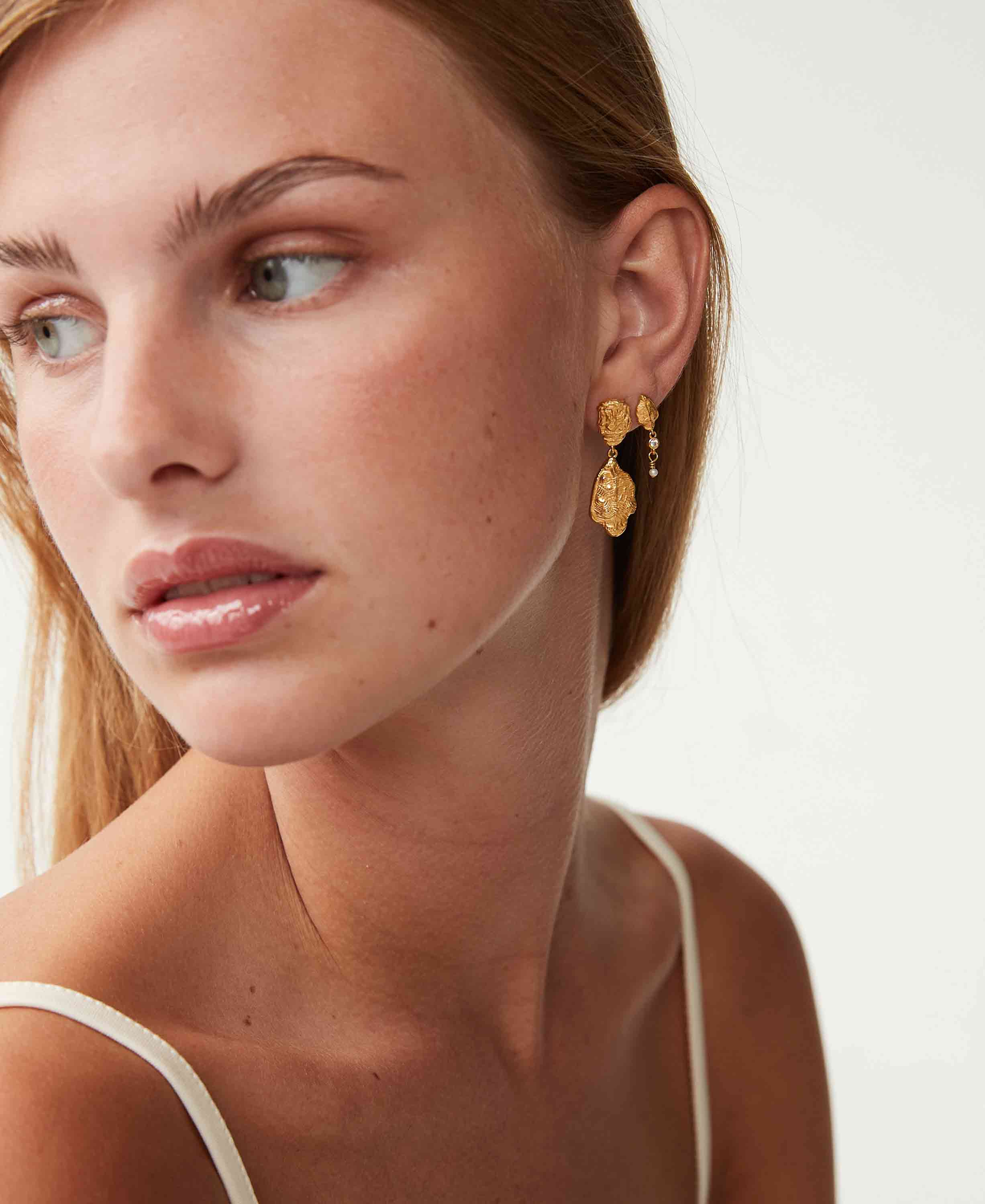 Lorelei er en blad serie inspireret af den danske naturs skønheder. 18K forgyldt sterlingsølv med 1 mikron og e-coating. Længde: 1.5 cm