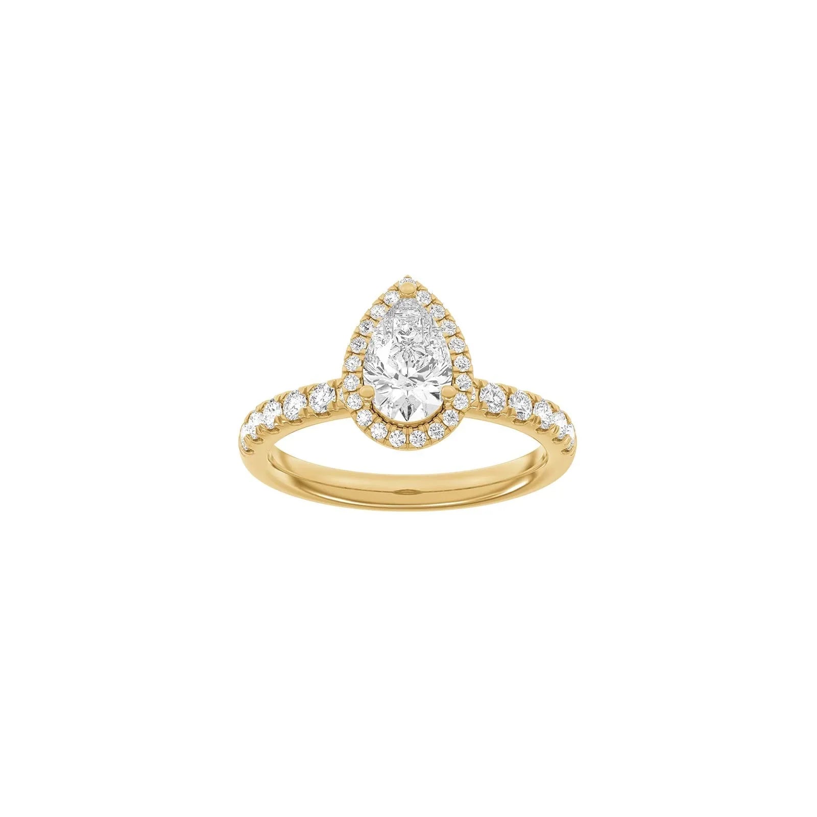 LUXURY Halo dråbe 14kt. guldsring m. Lab. G. dia. 1,52ct TW/VS2