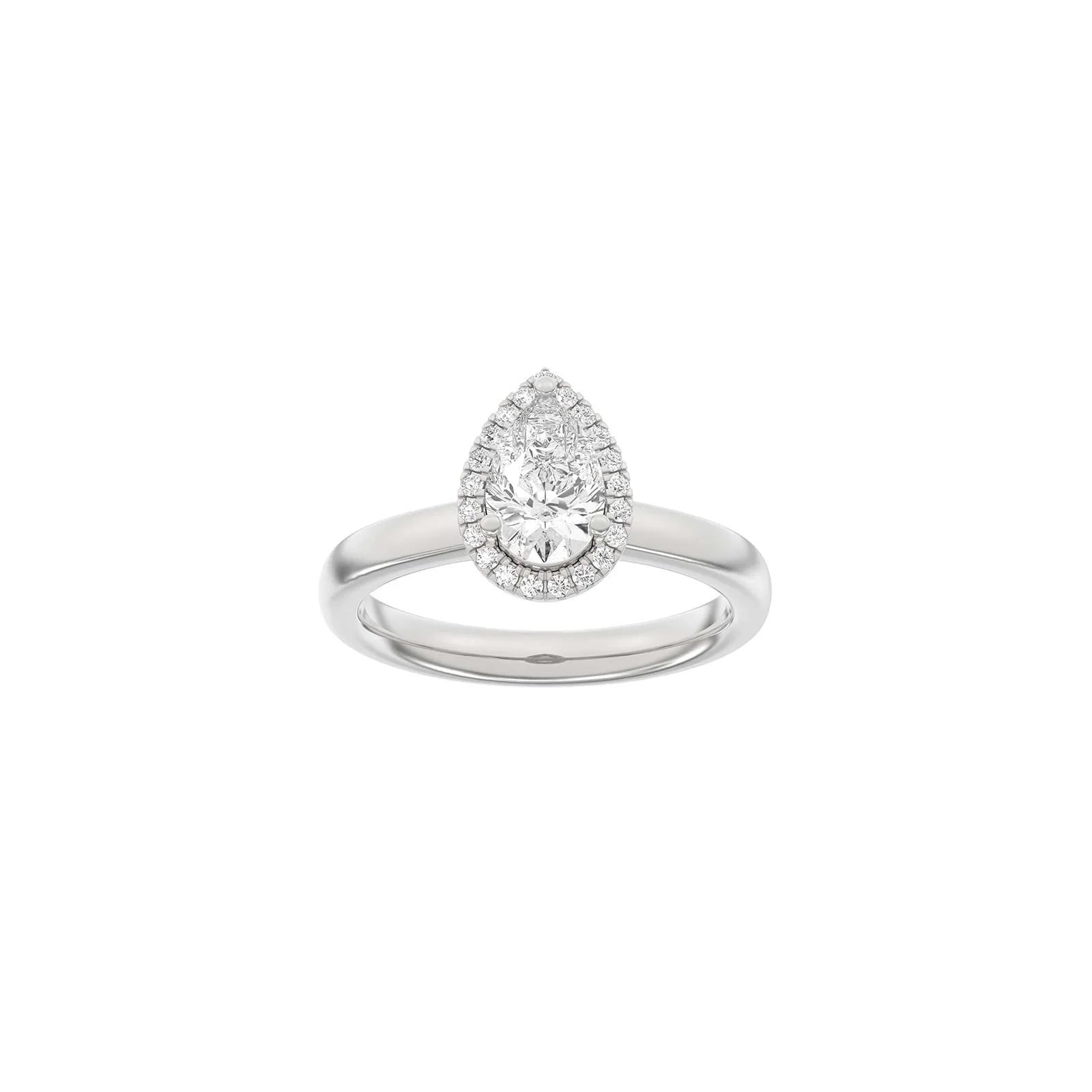 LUXURY Halo dråbe 14kt. hvidguldsringe m. Lab. G. dia. 1,12ct TW/VS2