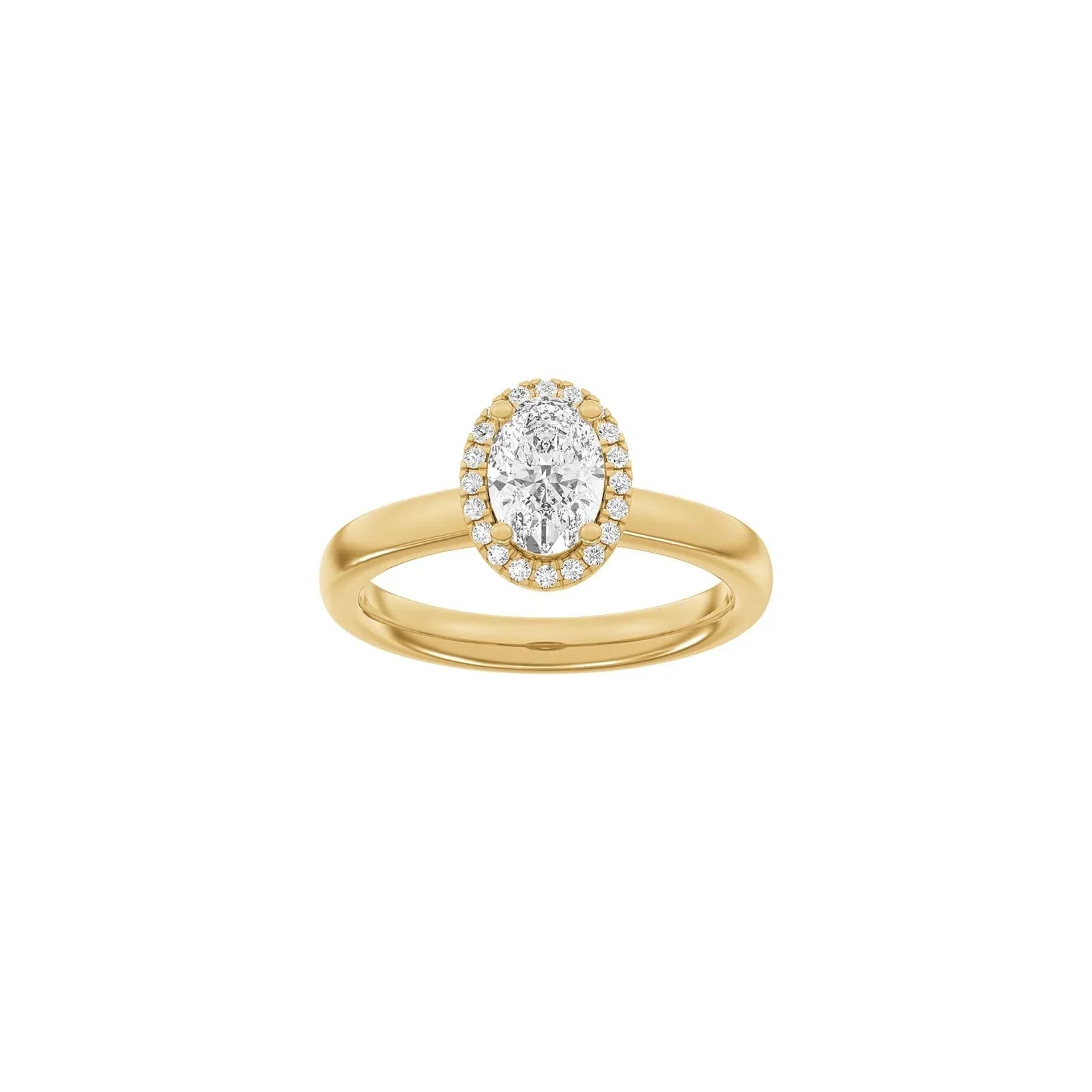 LUXURY Halo oval 14kt. guldsring m. Lab. G. dia. 1,12ct TW/VS2
