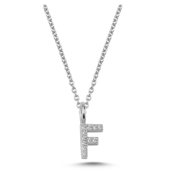 14kt. bogstav vedhæng F med pavè 11 x 0,005ct. W-si 6,5mm