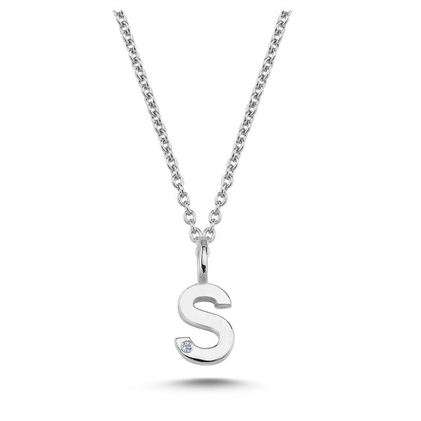 14kt. Bogstav vedhæng S med 1 x 0,005ct. W-si 6,5mm