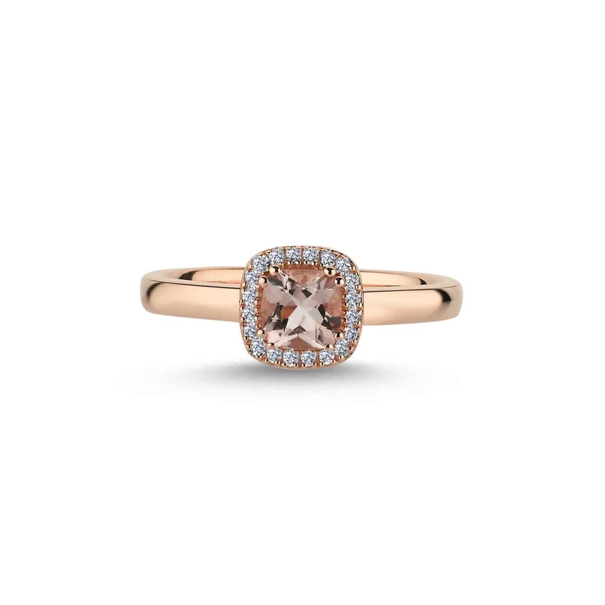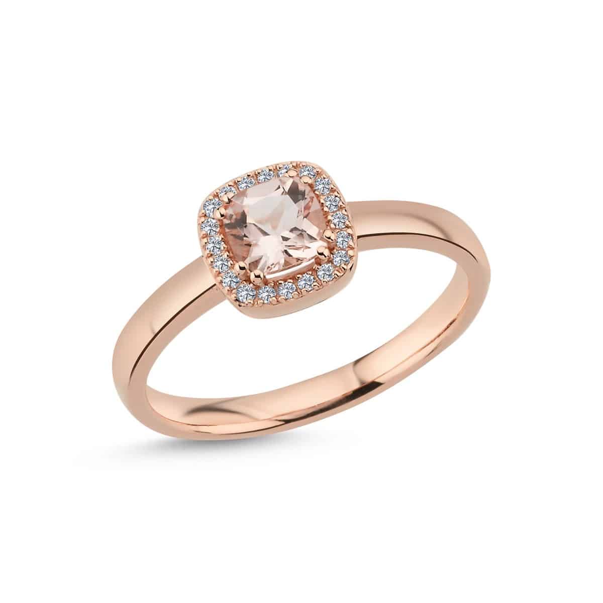 14kt. GRACE Ring med cushion-cut Morganit 5mm + 0,10ct. w-si