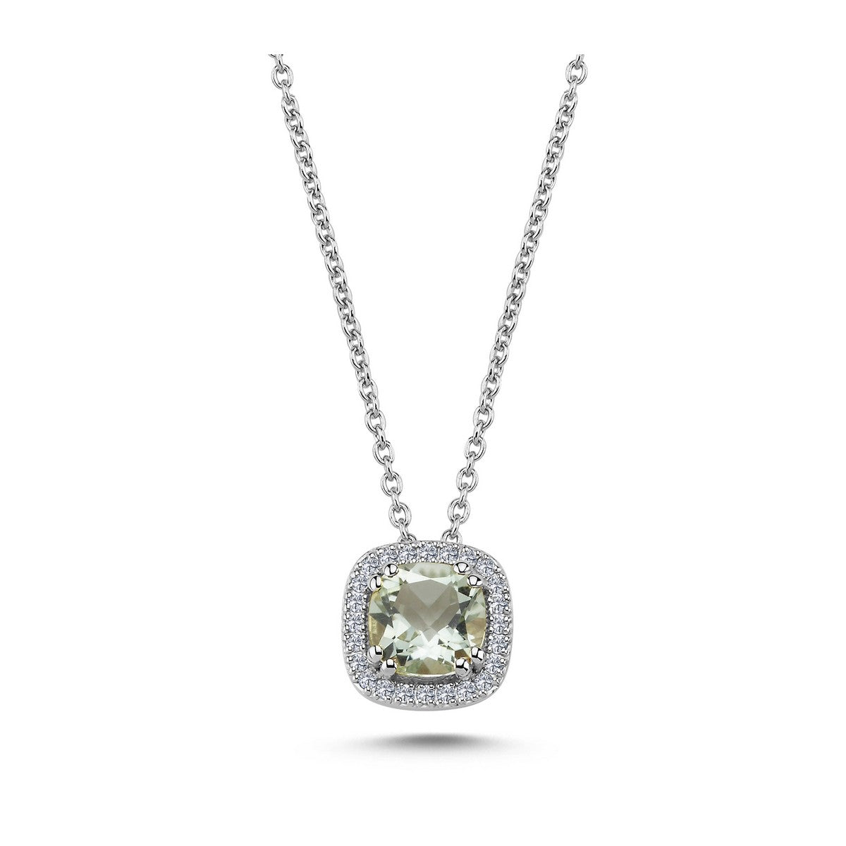 14kt. GRACE vedhæng med cushion-cut Grøn ametyst 6mm + 0,12ct. w-si