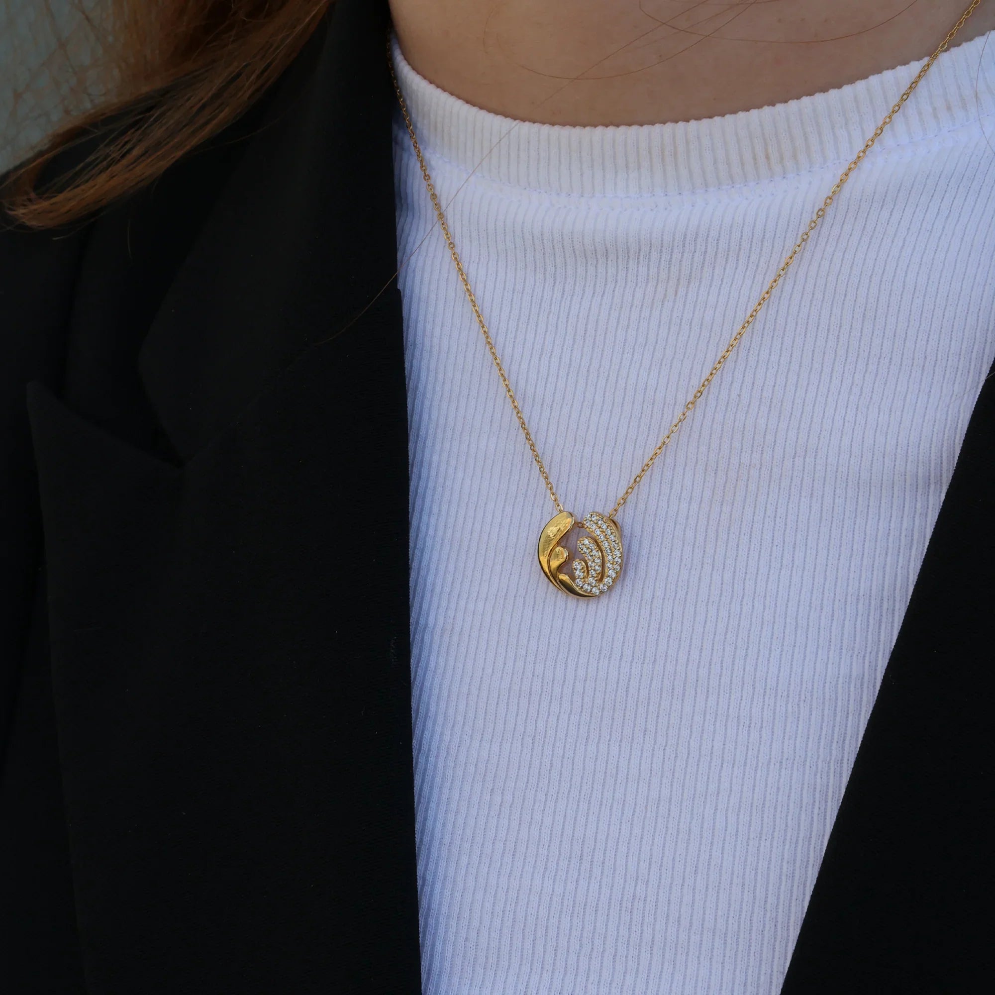 Ocean Splash Vedhæng - Blankpoleret Forgyldt Sterling Sølv m. 37 Cubic Zirkonia