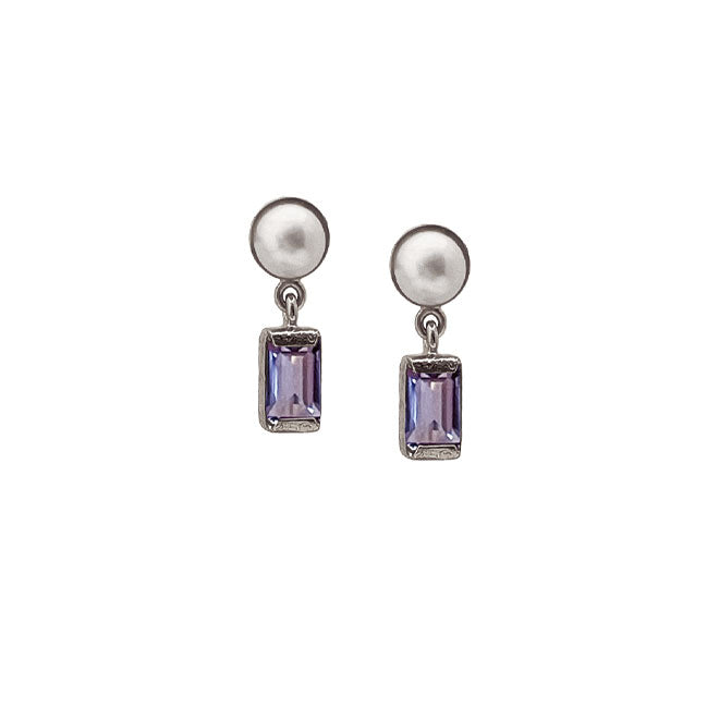 Ørering med perle og med blå topas - Sølv