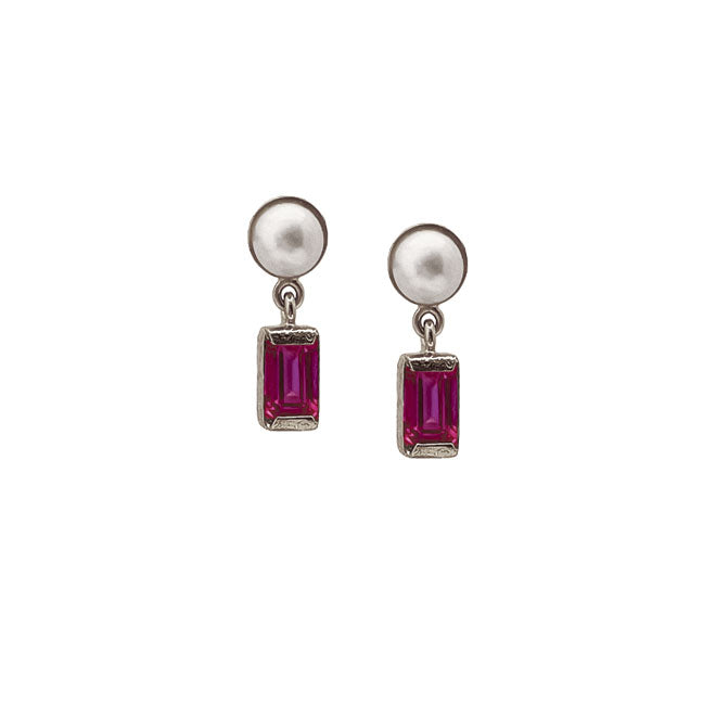 Ørering med perle og med mørkeblå topas - Sølv