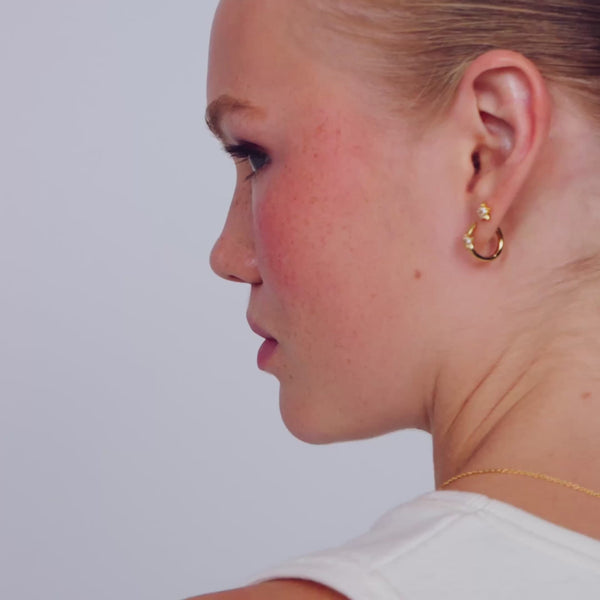 Øreringe Astri Creolo – 18 karat forgyldt, med hvide zirkoner.