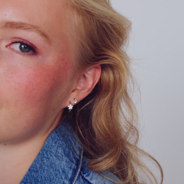 Øreringe Astri Creolo – med hvide zirkoner.