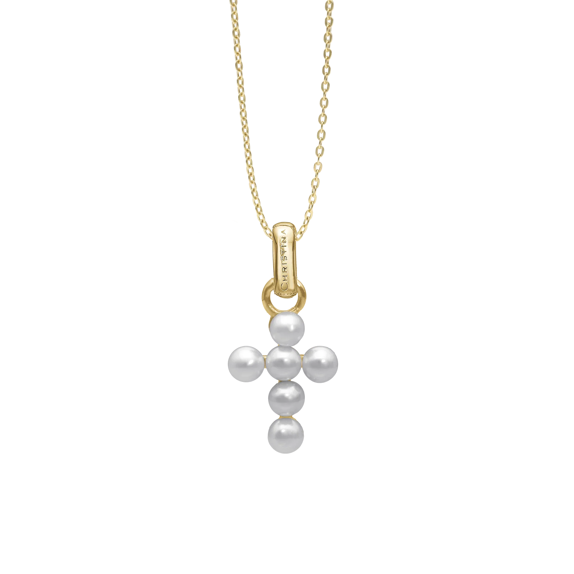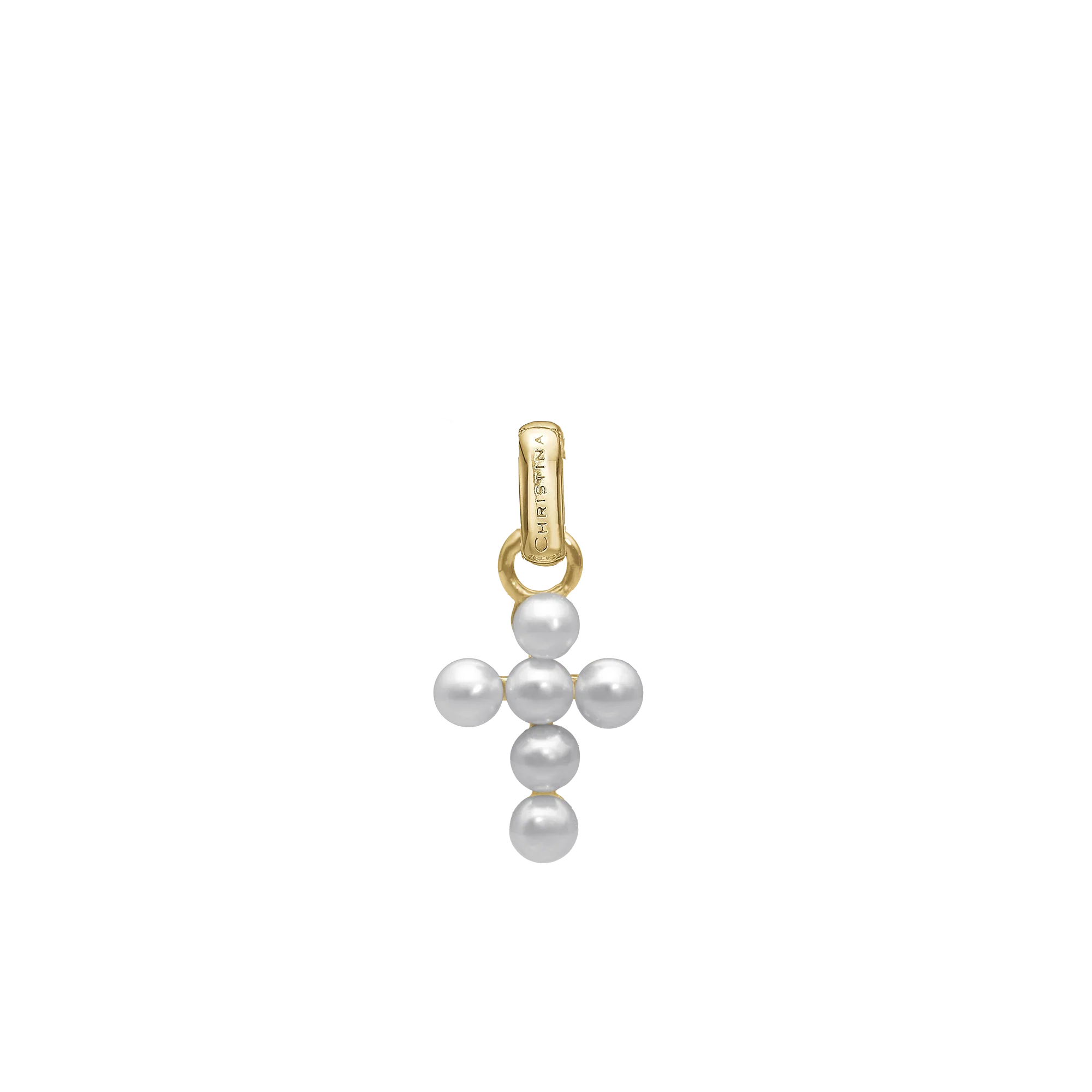 Pearl Cross Vedhæng - Blankpoleret Forgyldt Sterling Sølv m. 6 Ferskvandsperler