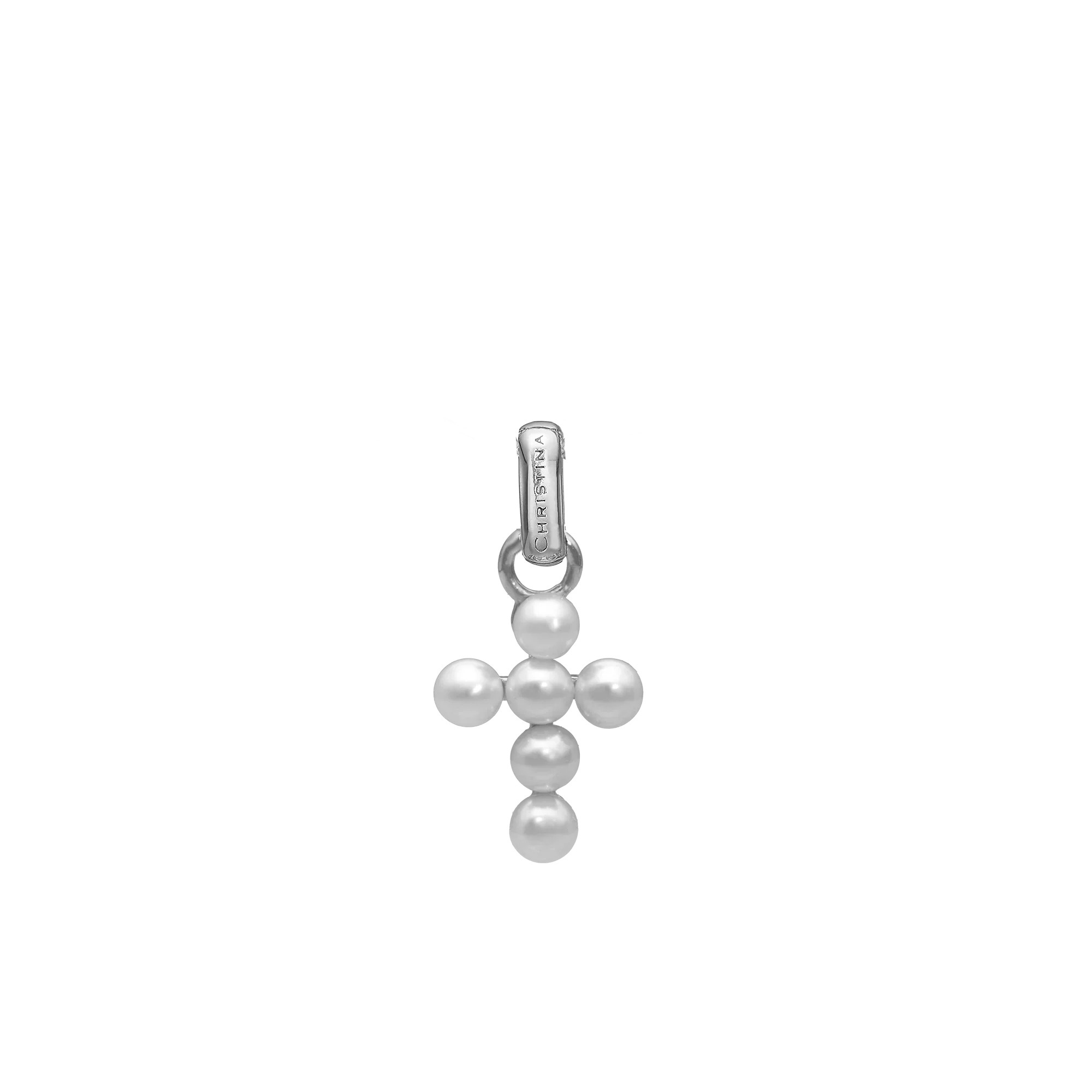 Pearl Cross Vedhæng - Blankpoleret Sterling Sølv m. 6 Ferskvandsperler