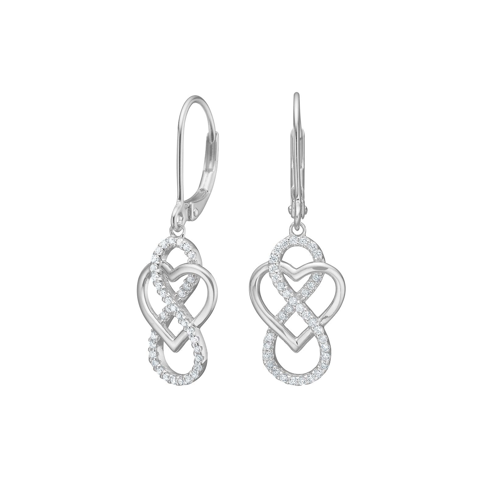 Rhod. sølvørehængere hjerte/engel m/cz - 30630050900