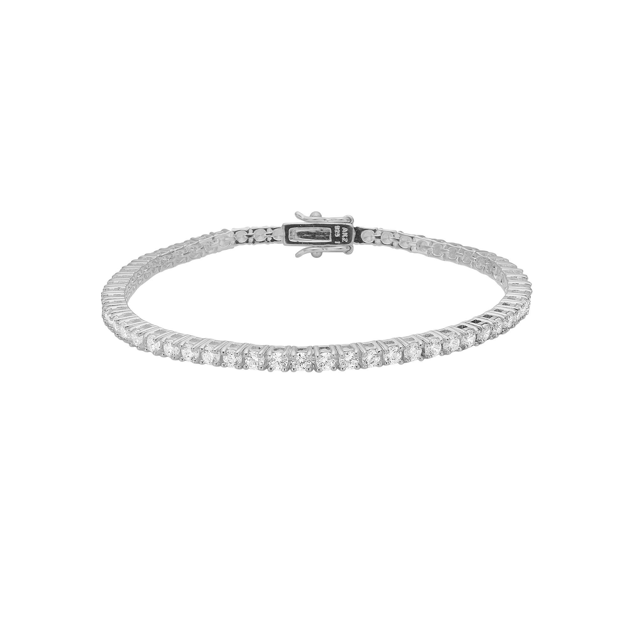 Rhod. Tennis Sølv Armbånd M/Cz 18Cm
