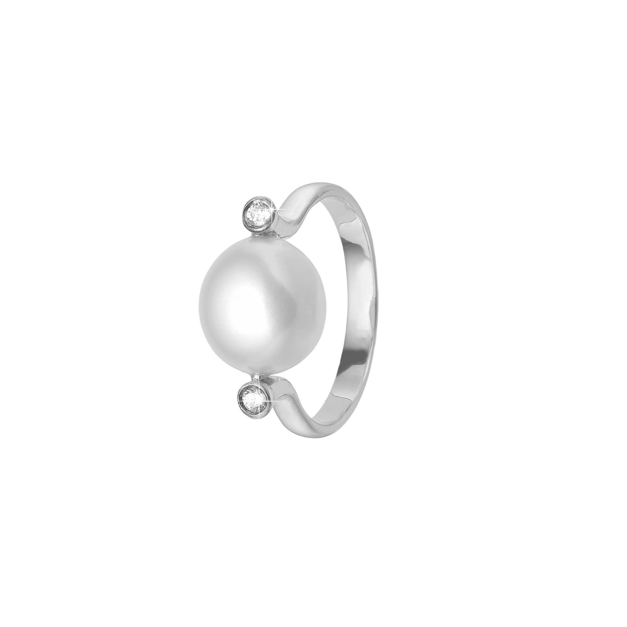 Ring, Barok Perle Ø10Mm, 2 Cz, Sølv