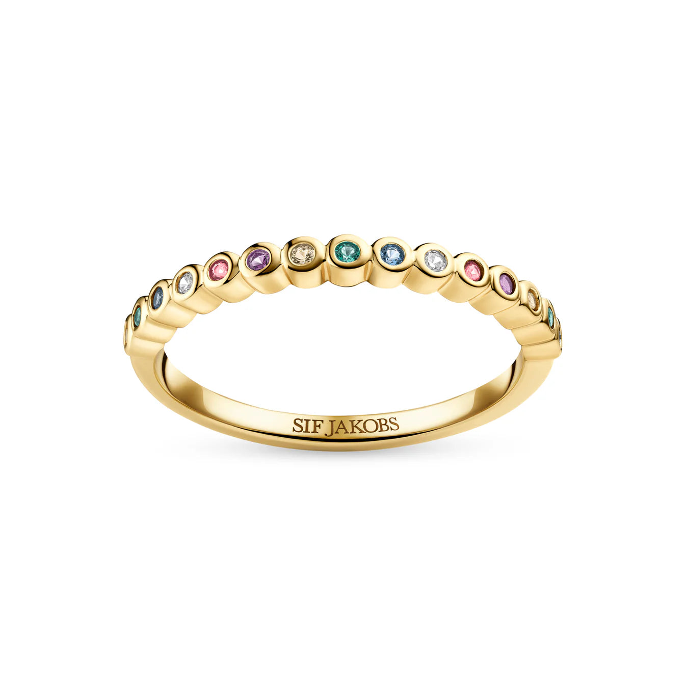 Ring Sarzana – 18 karat forgyldt, med multifarvede zirkoner.