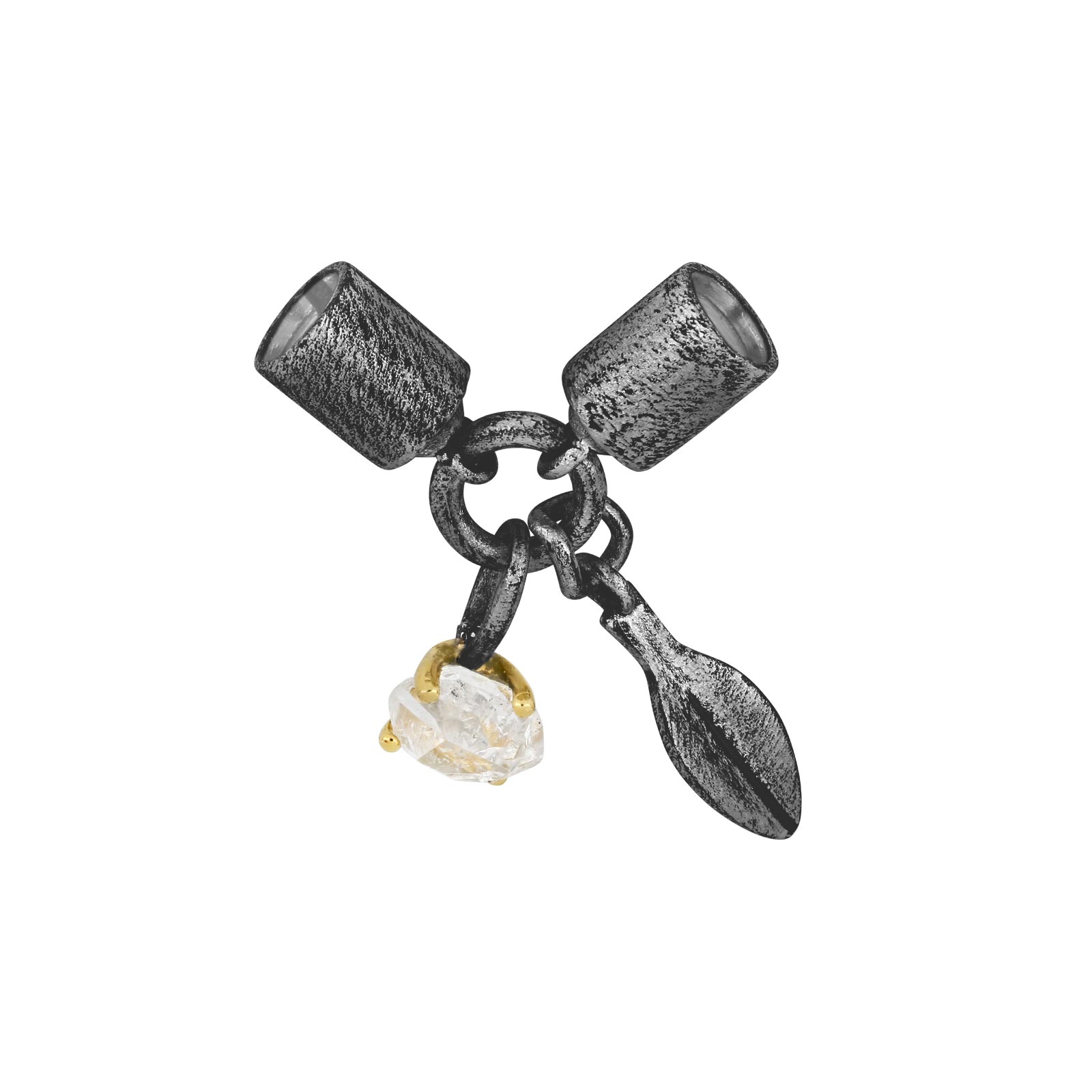 SHAPE Sort sølv rhod. lås m/Herkimer dia. og blad