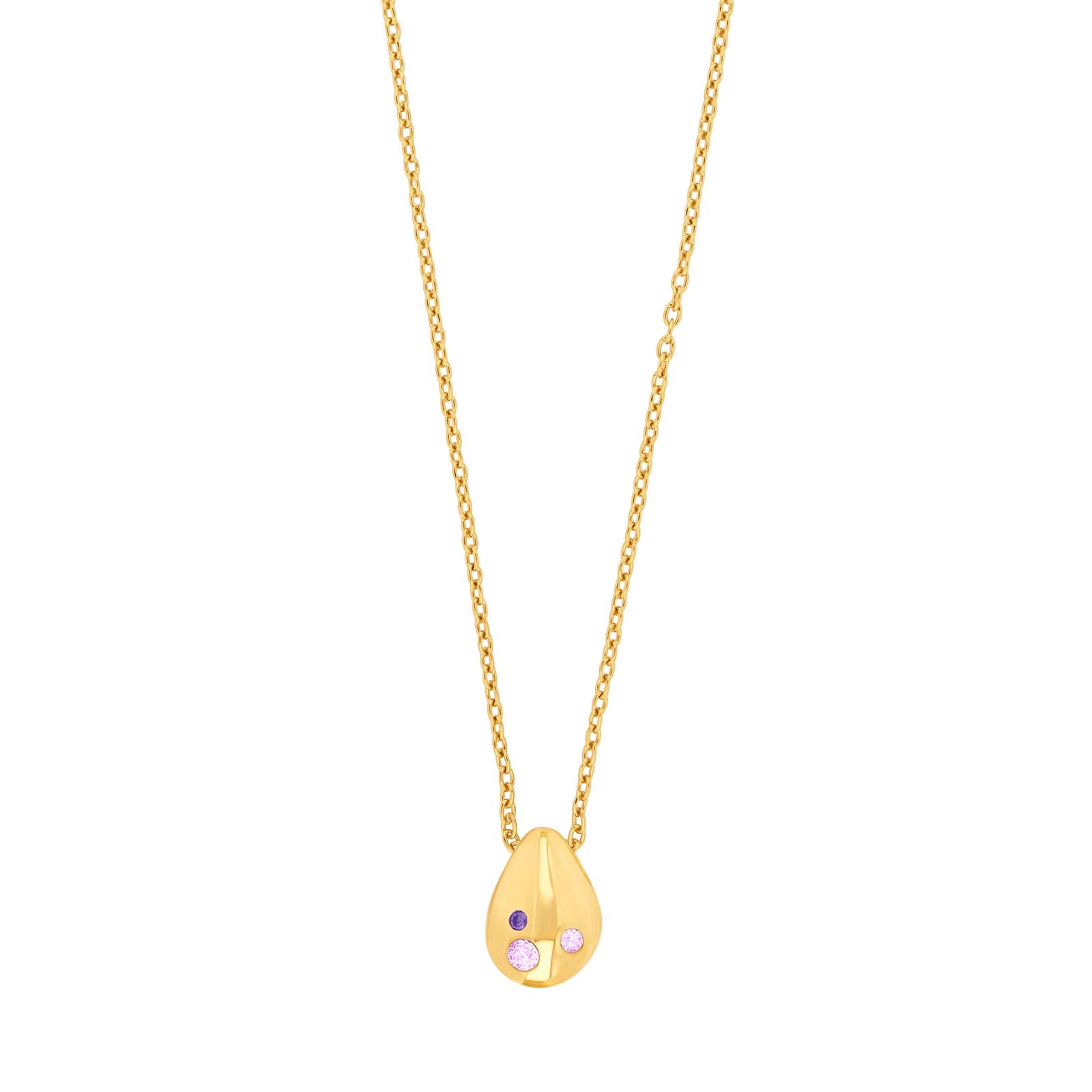 8kt. guldvedhæng m/ farvet cz inkl. forg. kæde