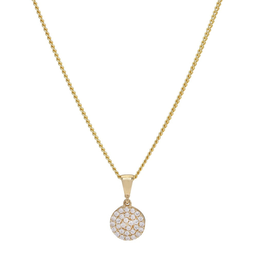 8kt. guldvedhæng rund m/cz inkl. forg. sølvkæde