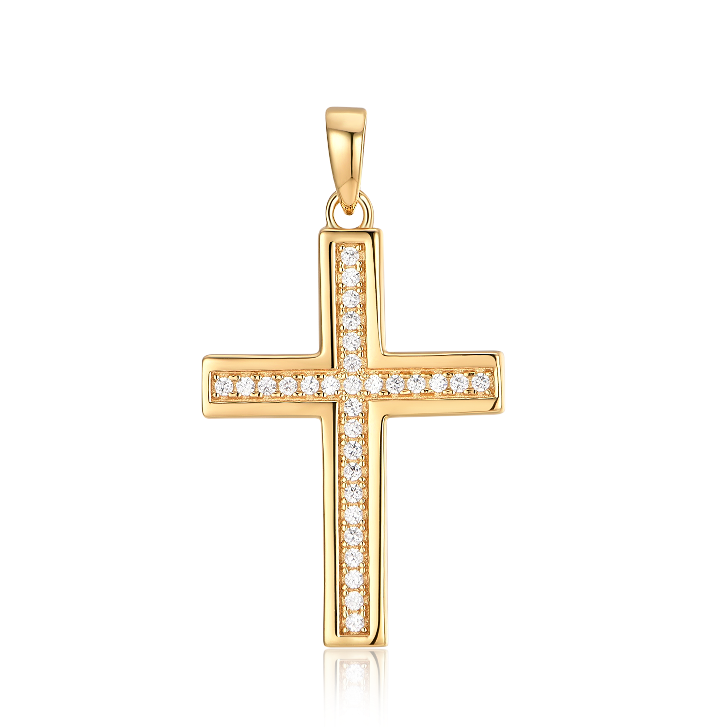 Sølvforgyldt vedhæng kors fyldt med syntetiske cubic zirconia.