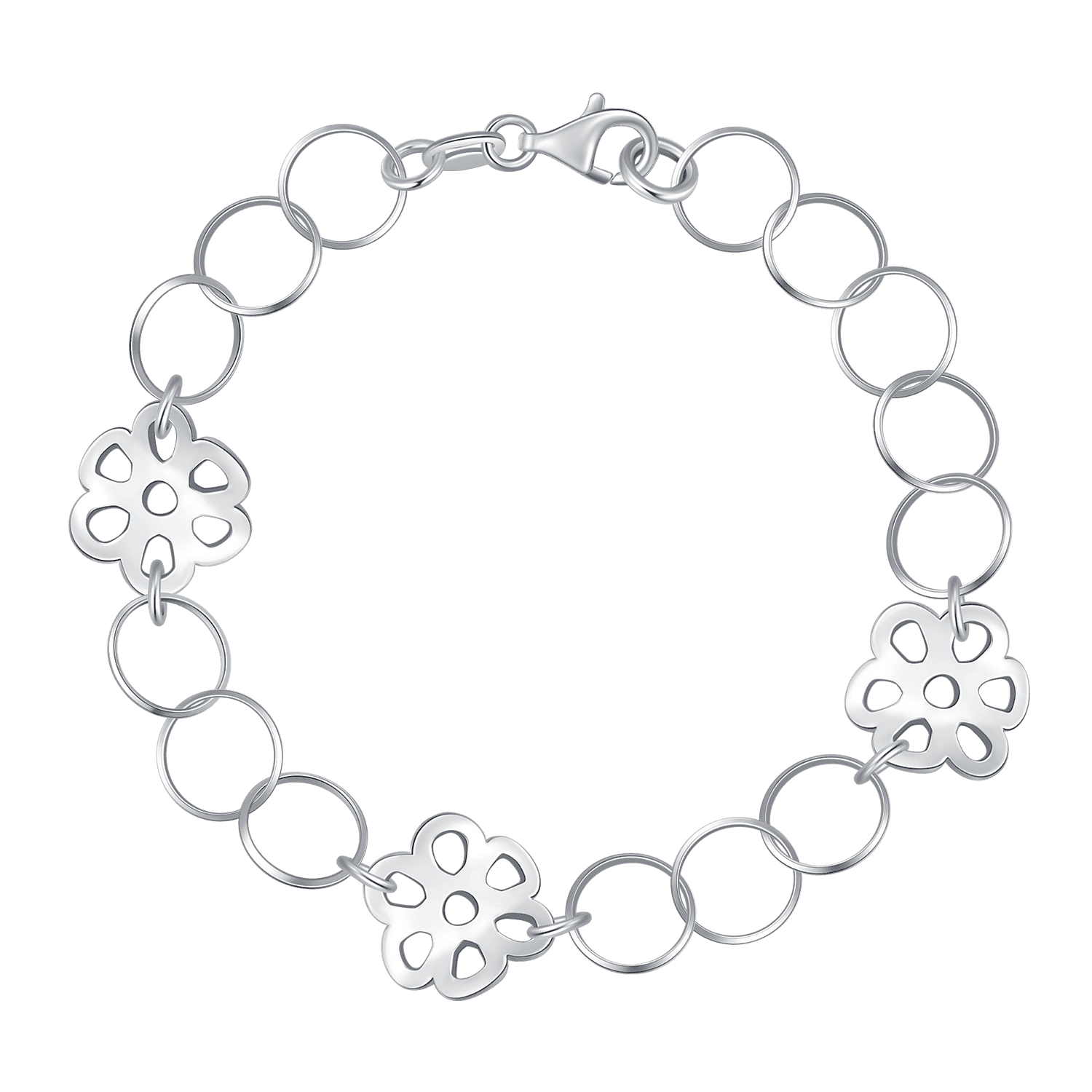 Sølv armbånd 3 bukket blomster med 6 blade og huller 19,5