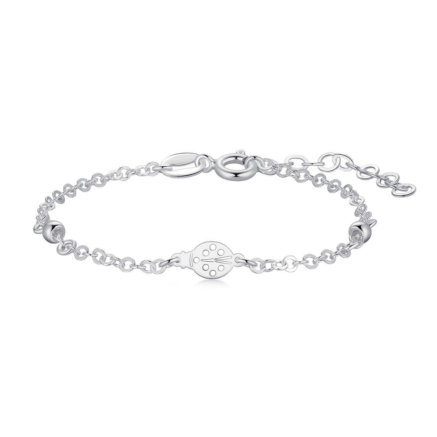 Sølv armbånd mariehøne og 2 små kugler 14+3 cm.